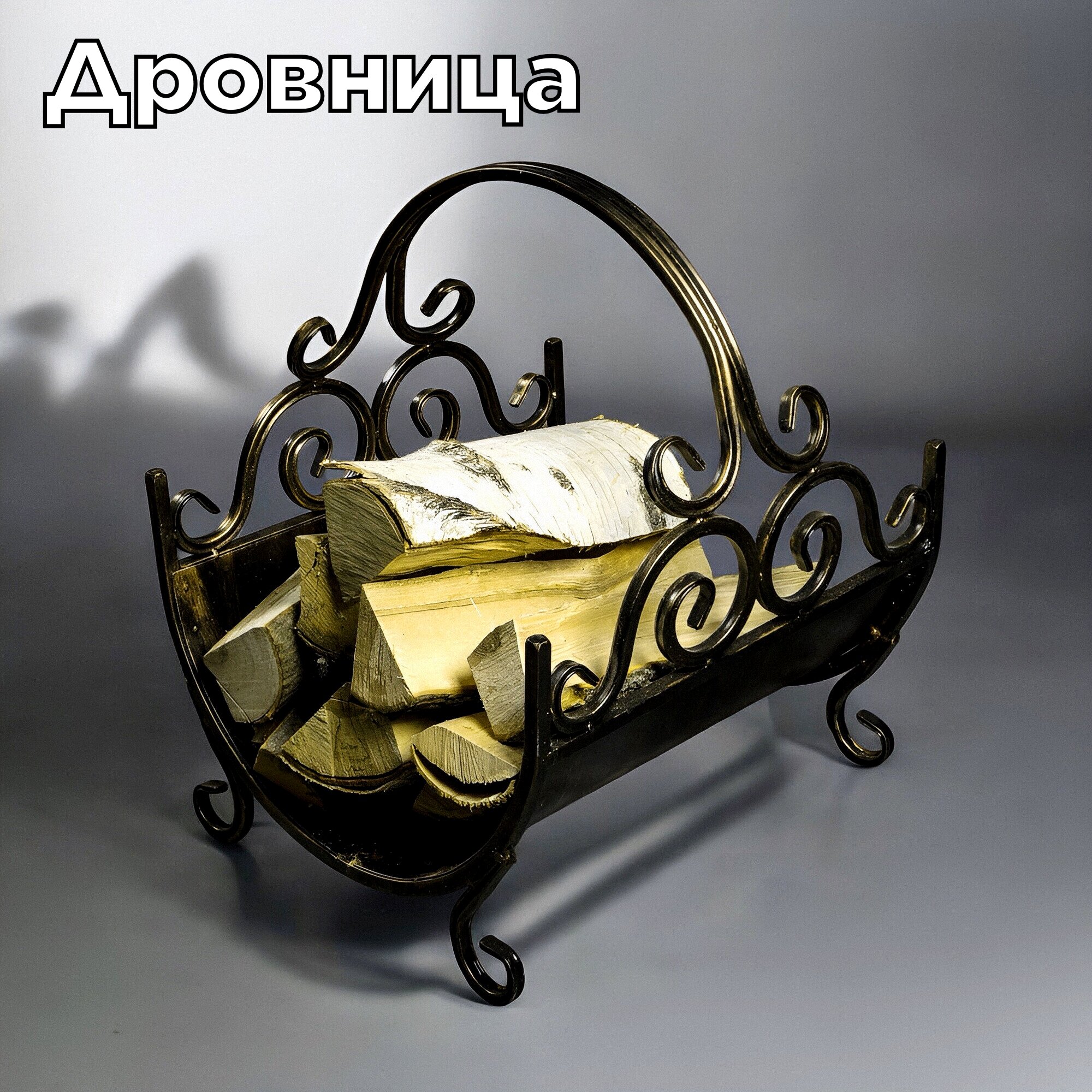 Дровница переносная, подставка для дров металлическая кованая для камина, бани и мангала, Laptev, цвет черный, бронзовый