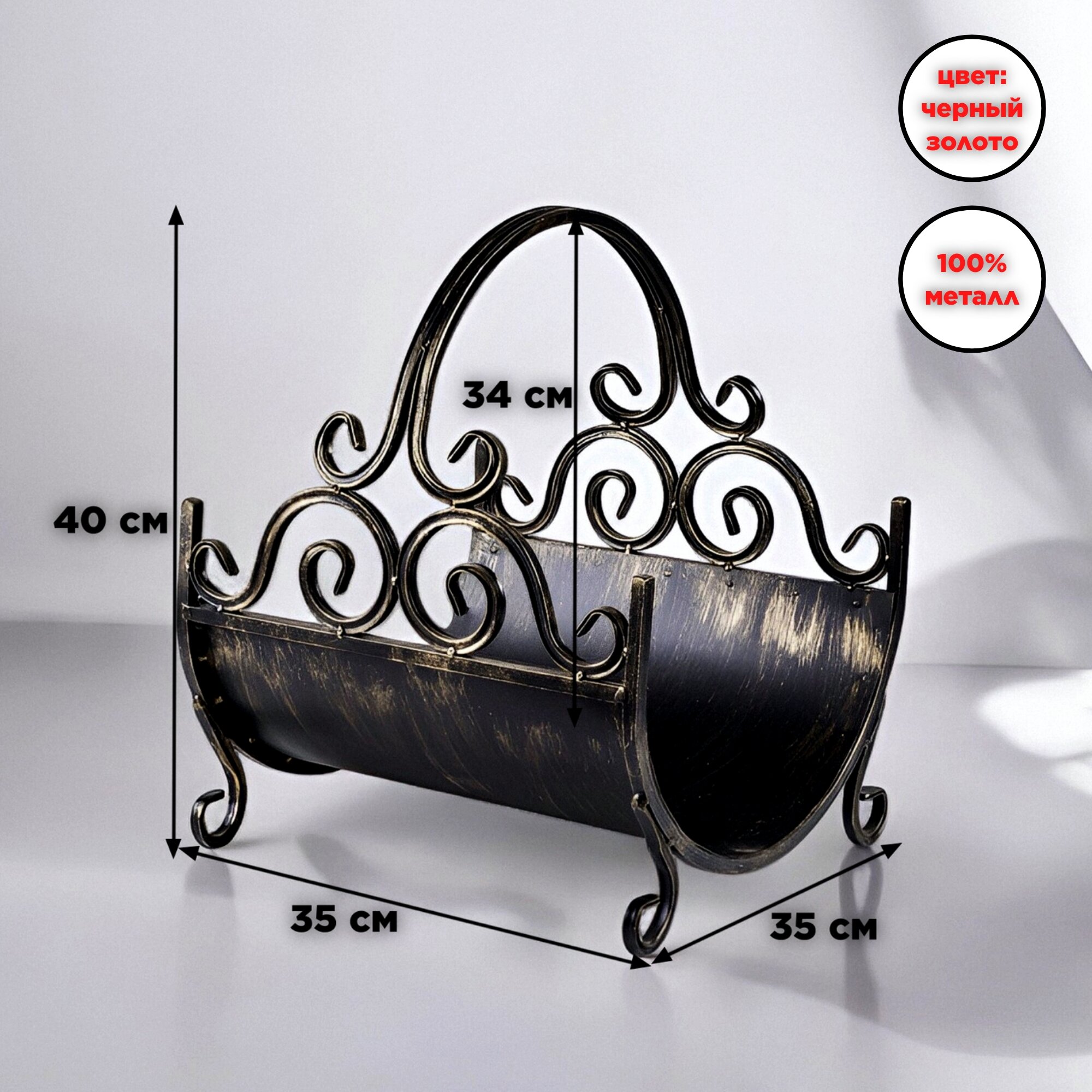 Купить Металлическая кованая дровница для камина и бани под дрова для дома и улицы, черный золото, 33х35х41 см