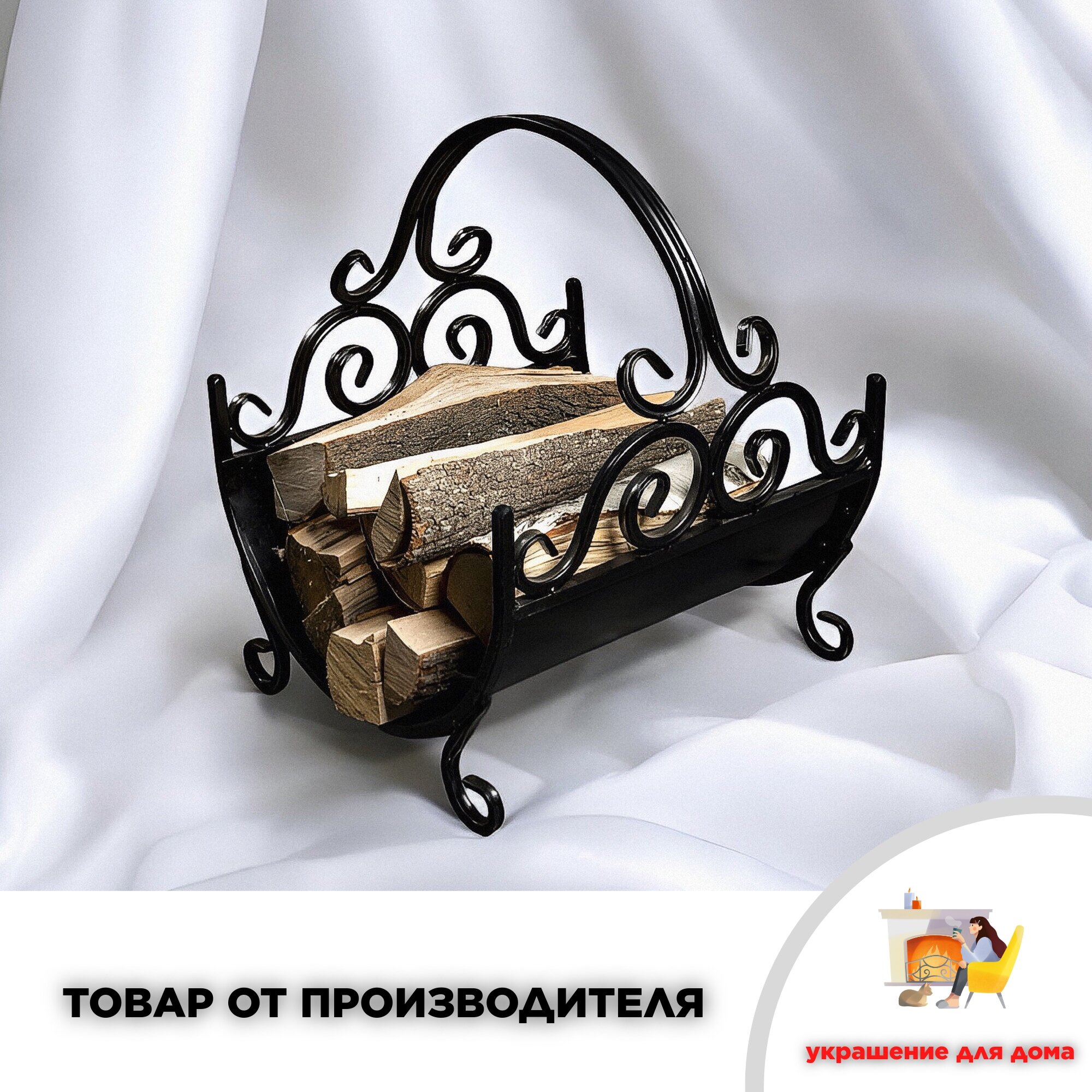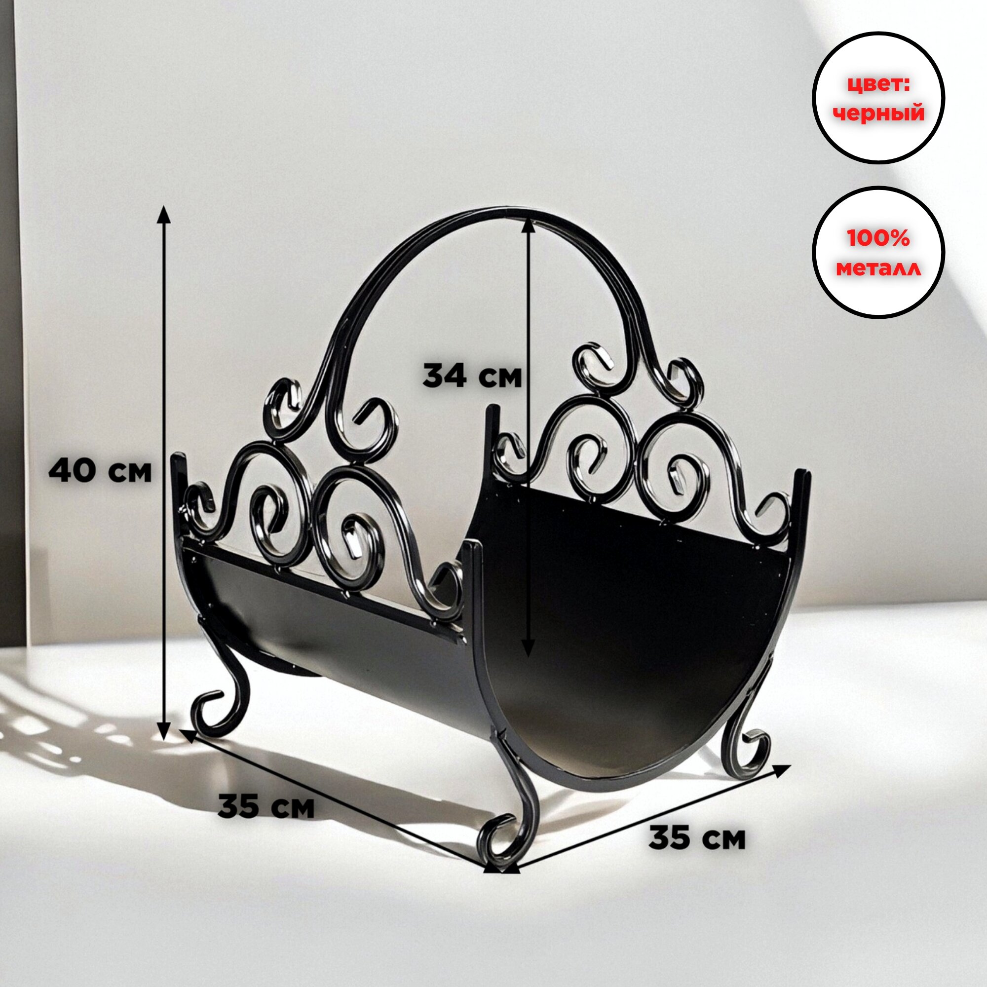 Купить Металлическая кованая дровница для камина и бани под дрова для дома и улицы, цвет черный, 33х35х41 см