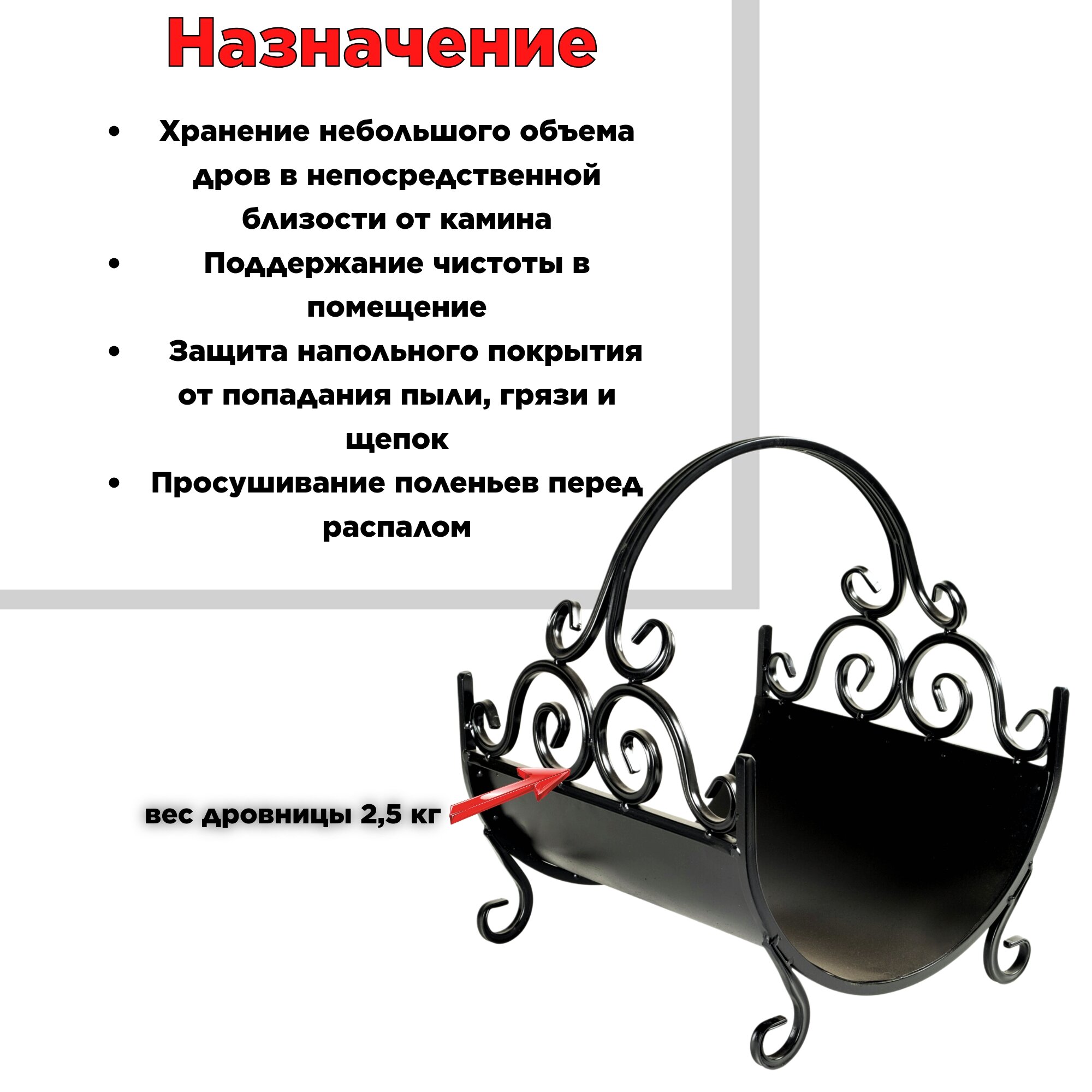 СохранитьМеталлическая кованая дровница для камина и бани под дрова для дома и улицы, цвет черный, 33х35х41 см интересное: