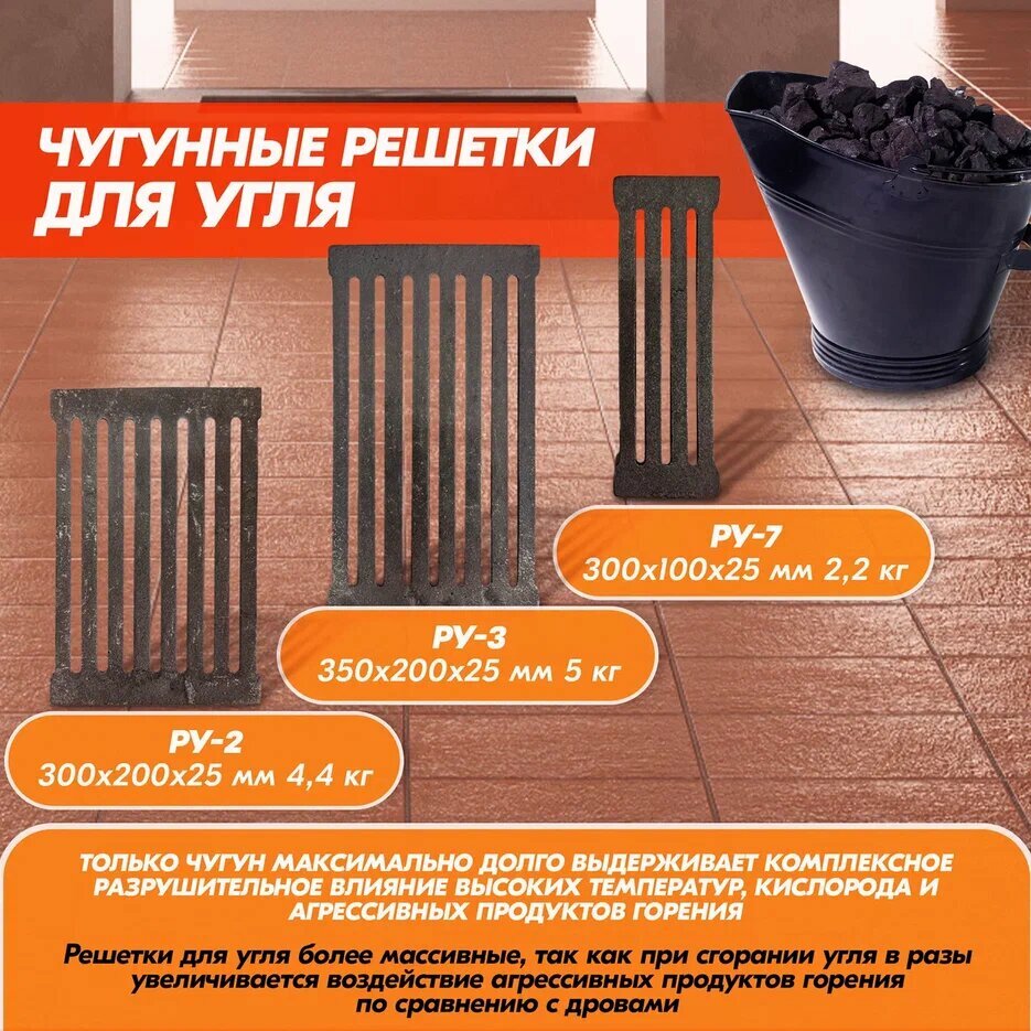 Решетка чугунная колосниковая РУ-7 300х100 мм для печей и каминов Бисерский литейный завод