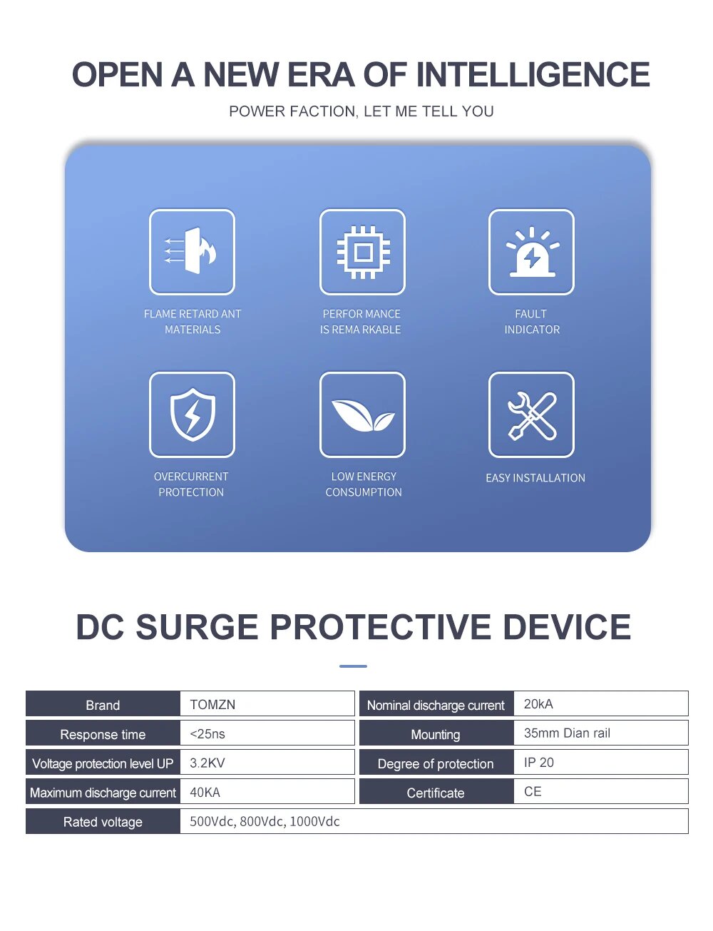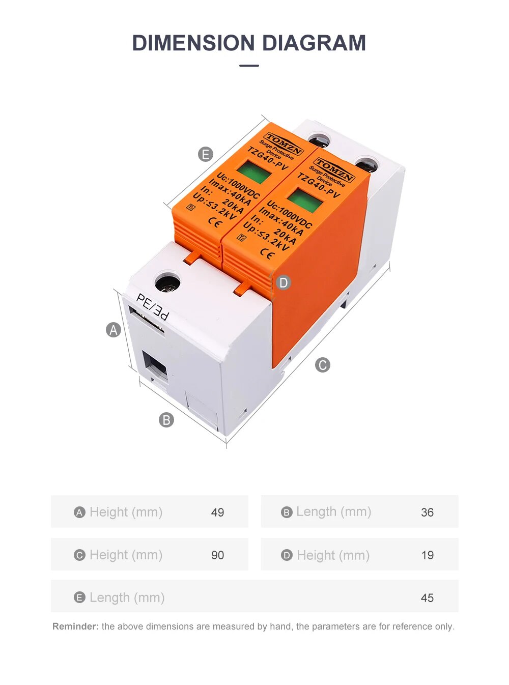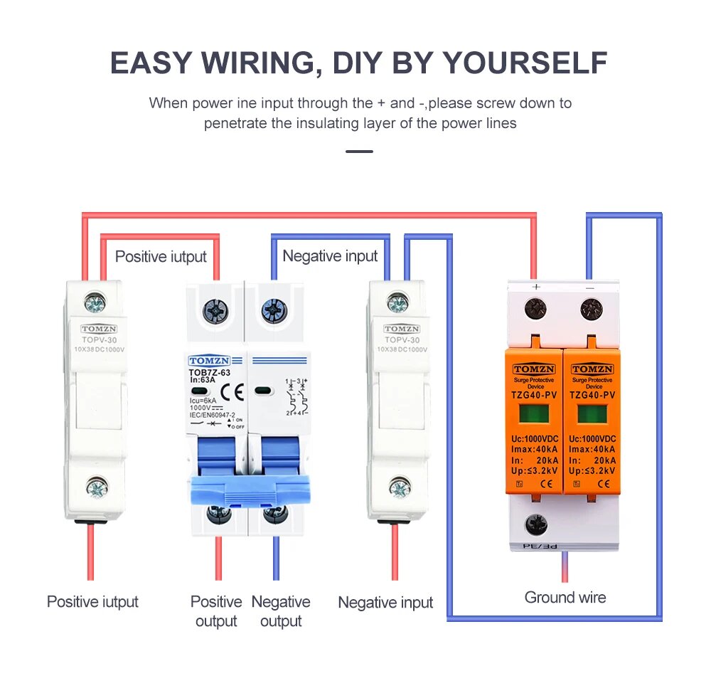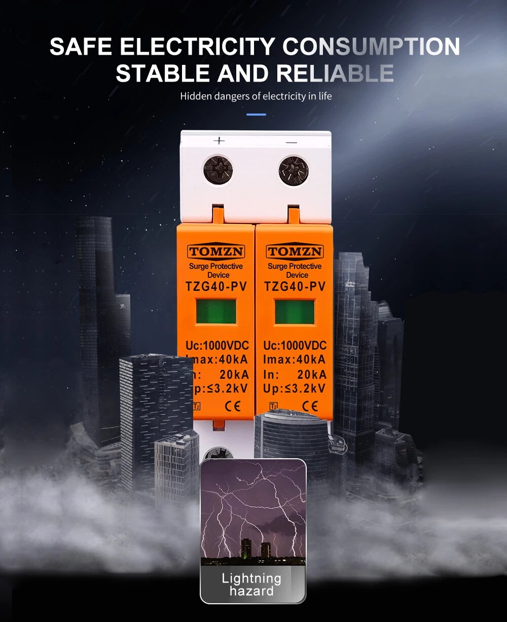 TOMZN DC SPD 1000 в 20 ка ~ 40 кА Защита от перенапряжения для дома защитное устройство от низкого напряжения