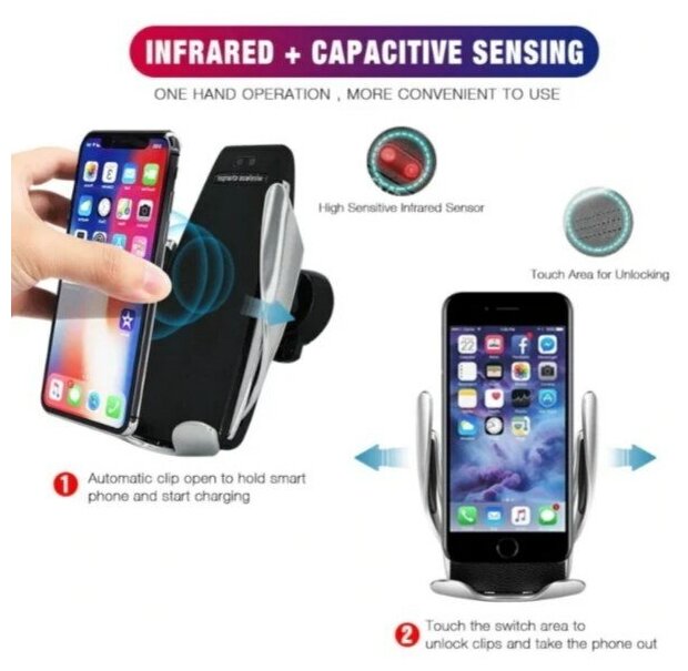 Держатель черный с беспроводной зарядкой AXPER Magic SMART Qi (пингвин) на решетку интересное: