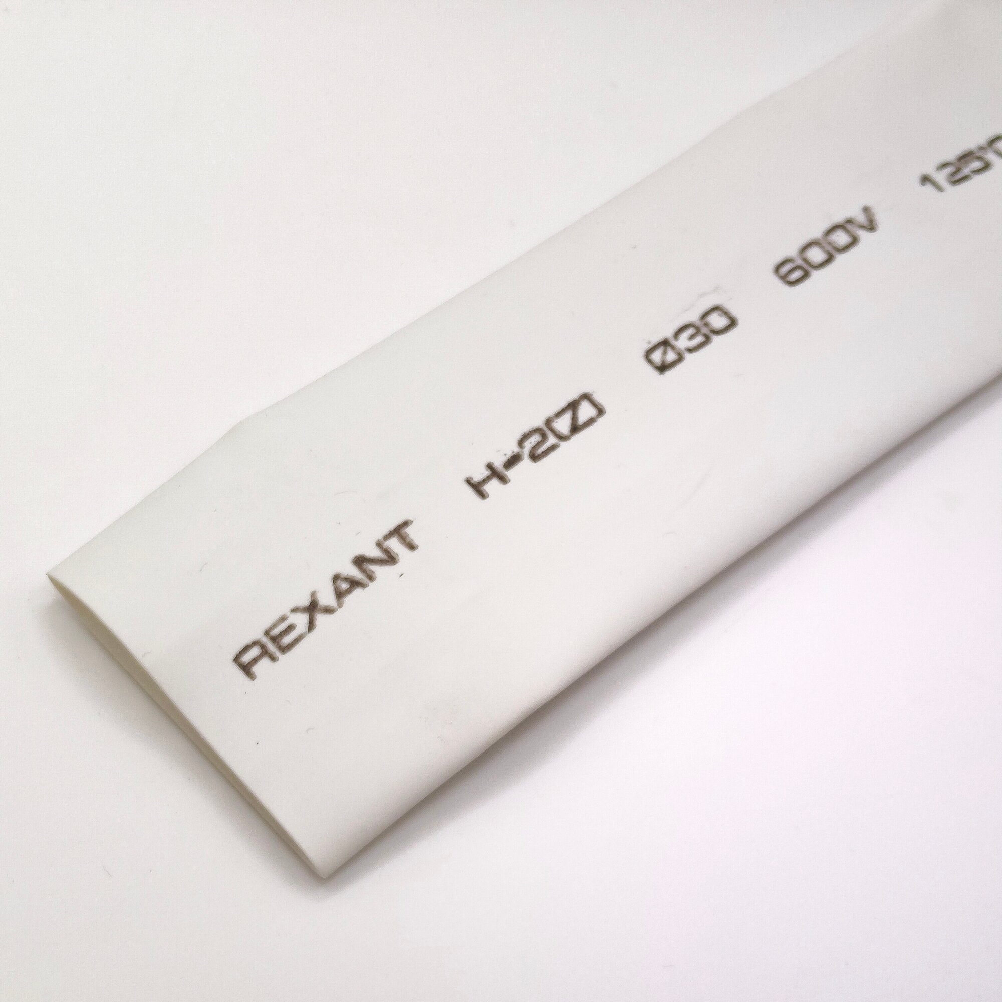 Термоусадка 30,0 / 15,0 мм, белая 1 м REXANT
