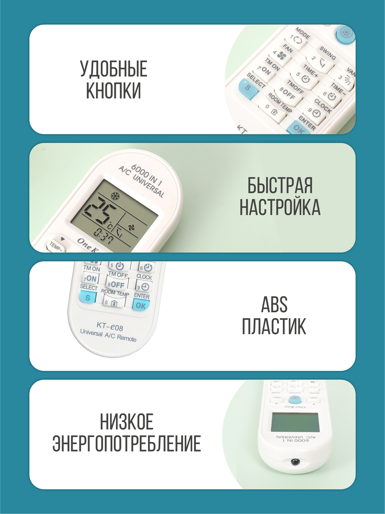 Пульт для кондиционера универсальный 6000 в 1, цвет - белый, (инструкция на русском языке) интересное: