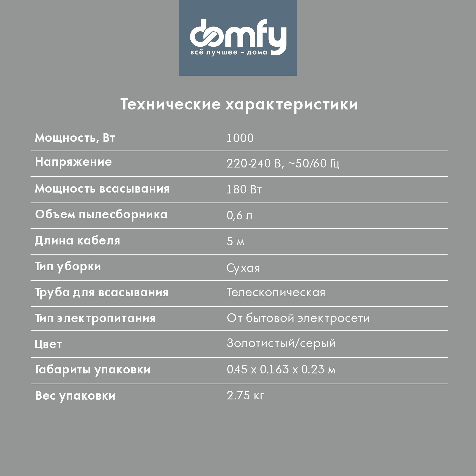 Пылесос ручной Domfy DSC-VC304 1000Вт золотистый/серый