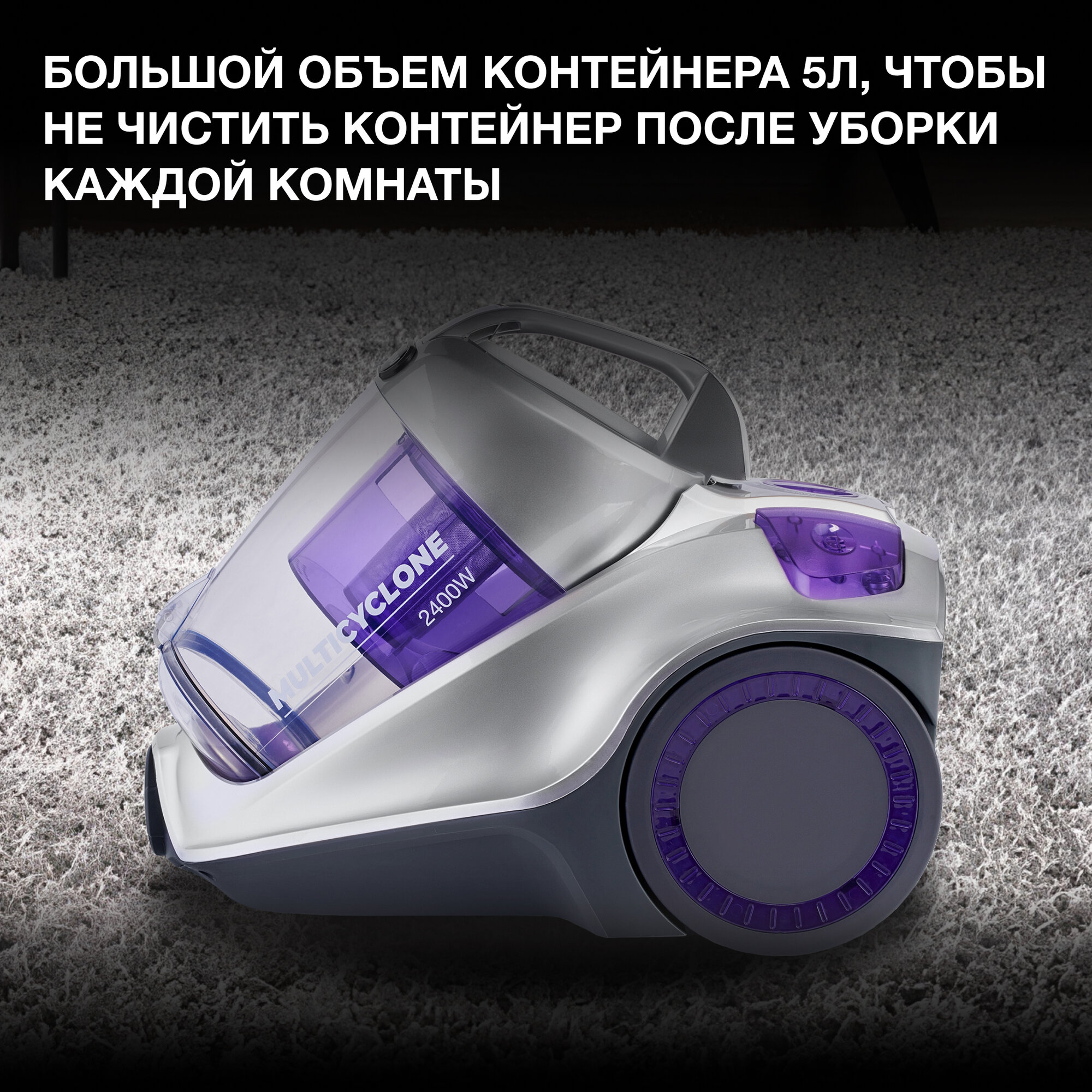 Пылесос Hyundai HYV-C4580, 2400Вт, белый/сиреневый