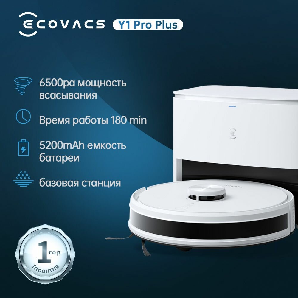 Купить Робот-пылесос ECOVACS DEEBOT Y1 Pro Plus со станцией самоочистки, Русская версия