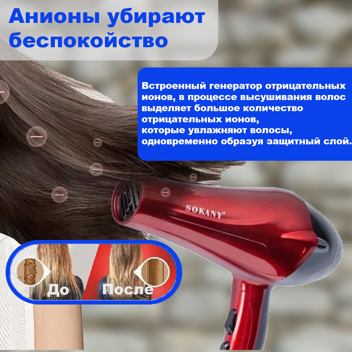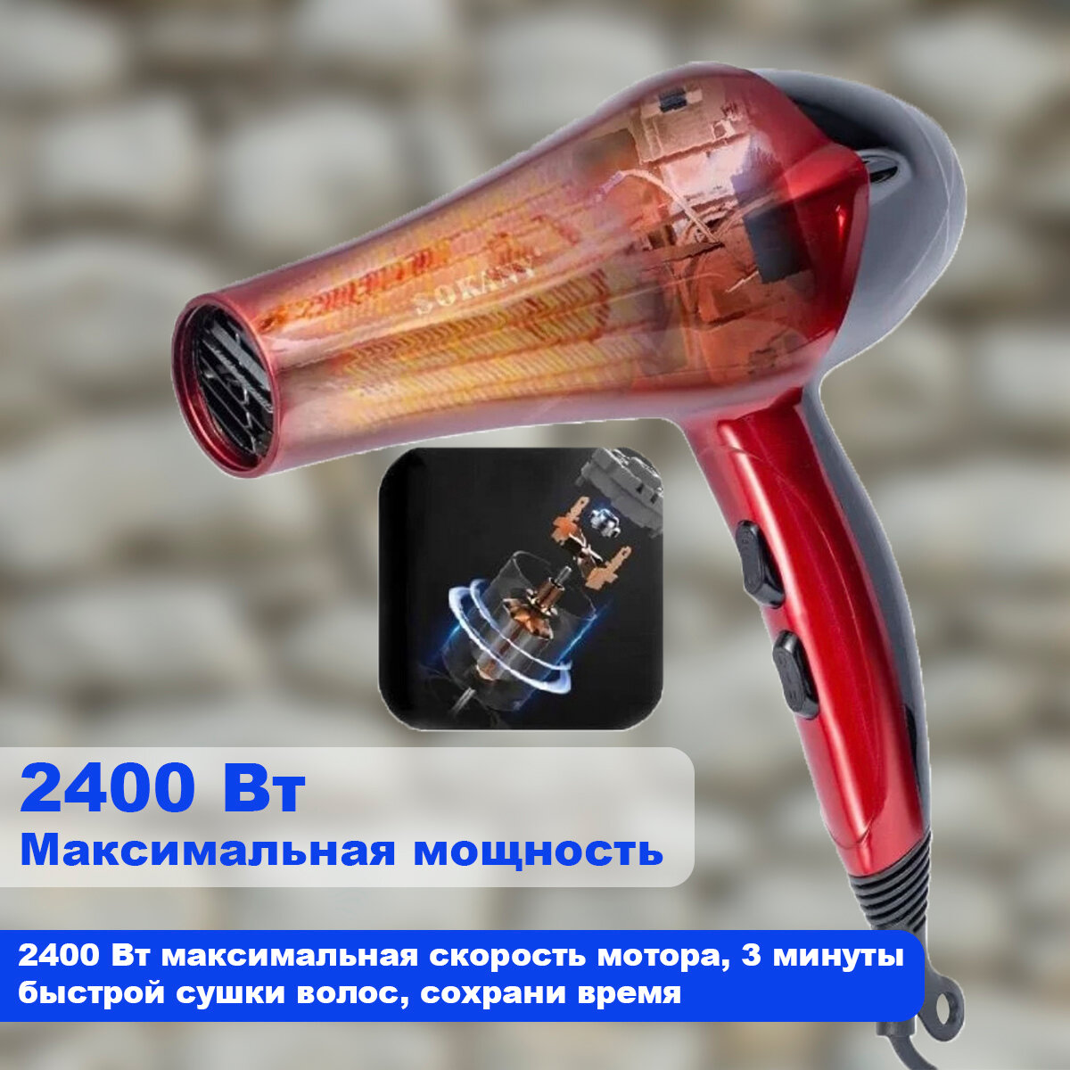 Профессиональный фен для волос, фен для сушки волос, Sokan, красный интересное: