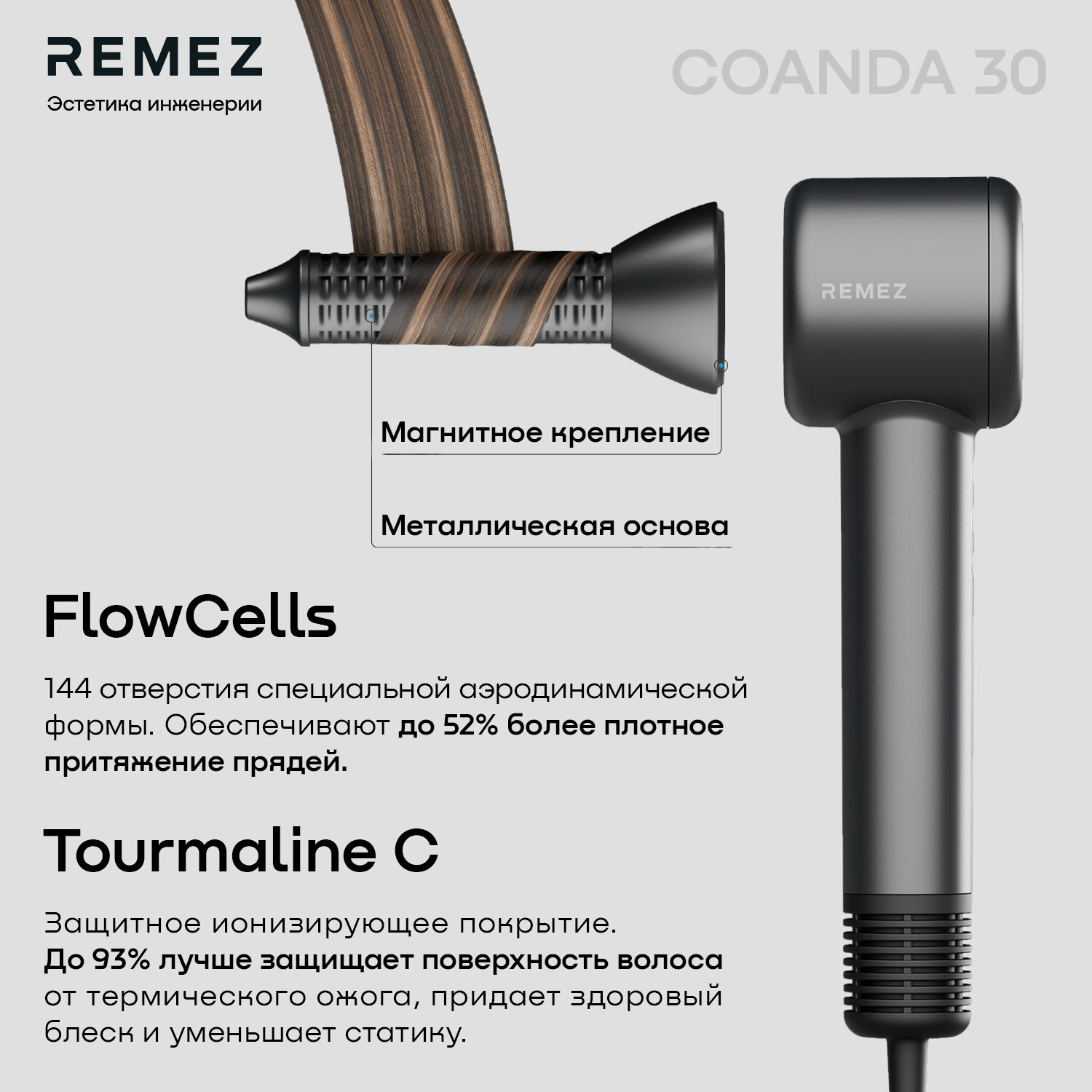 Фен-Стайлер REMEZ Model Е RMB-701 для волос с магнитными насадками в комплекте