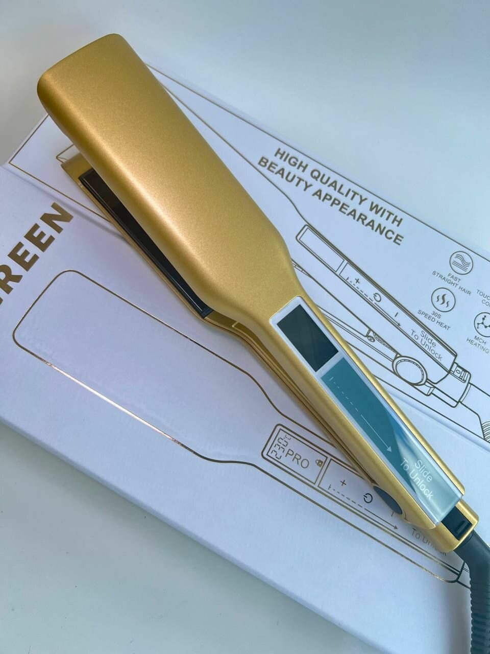 Выпрямитель Утюжок для кератина ботокса широкие титановые пластины Professional Hair , TouchScreen , черный блеск
