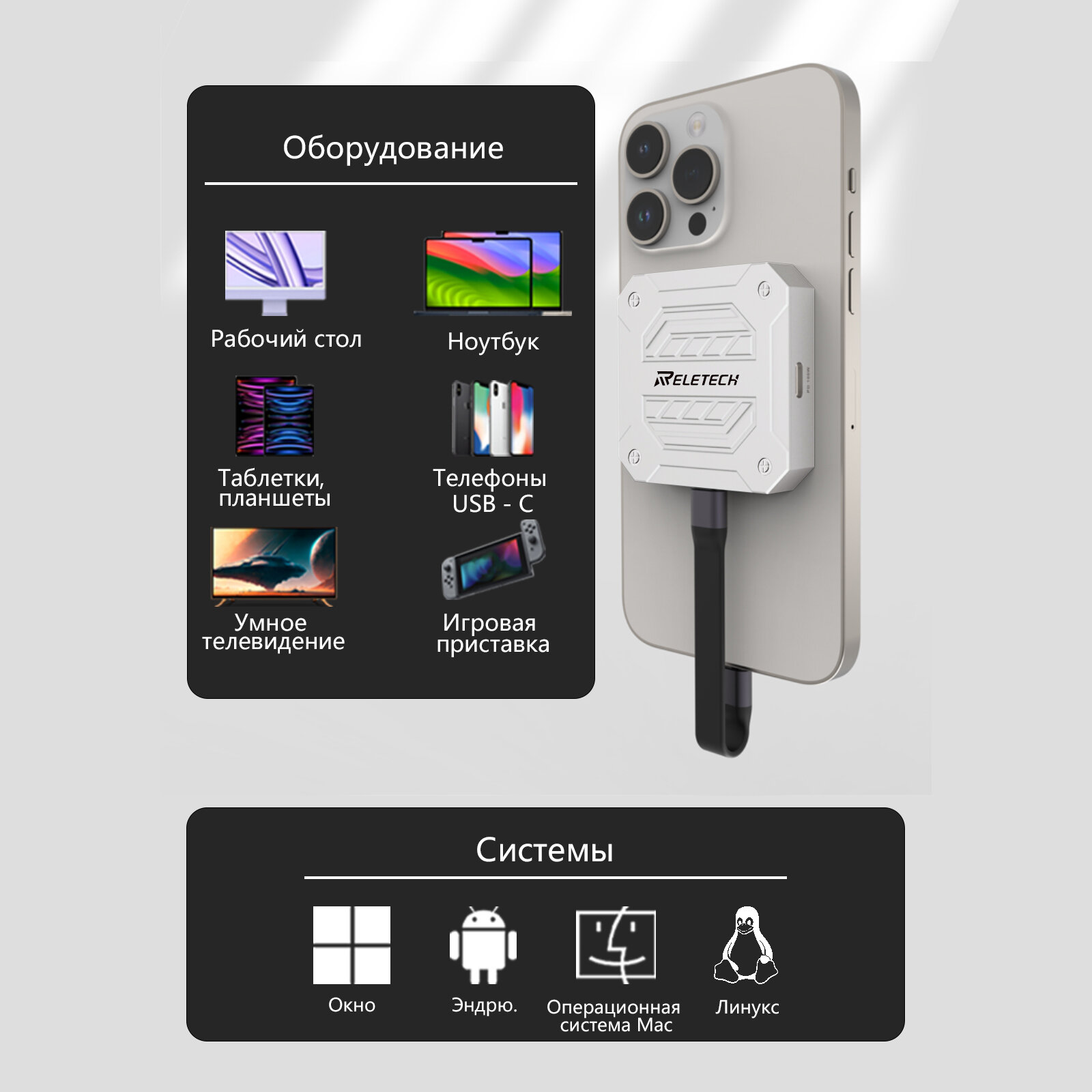 СохранитьReletech Elite9 Pro 1ТБ магнитный портативный SSD, сверхбыстрая зарядка 100 Вт, OTG совместим с iPhone 16/15, USB C смартфоны, планшеты, ноутбуки,Белый интересное: