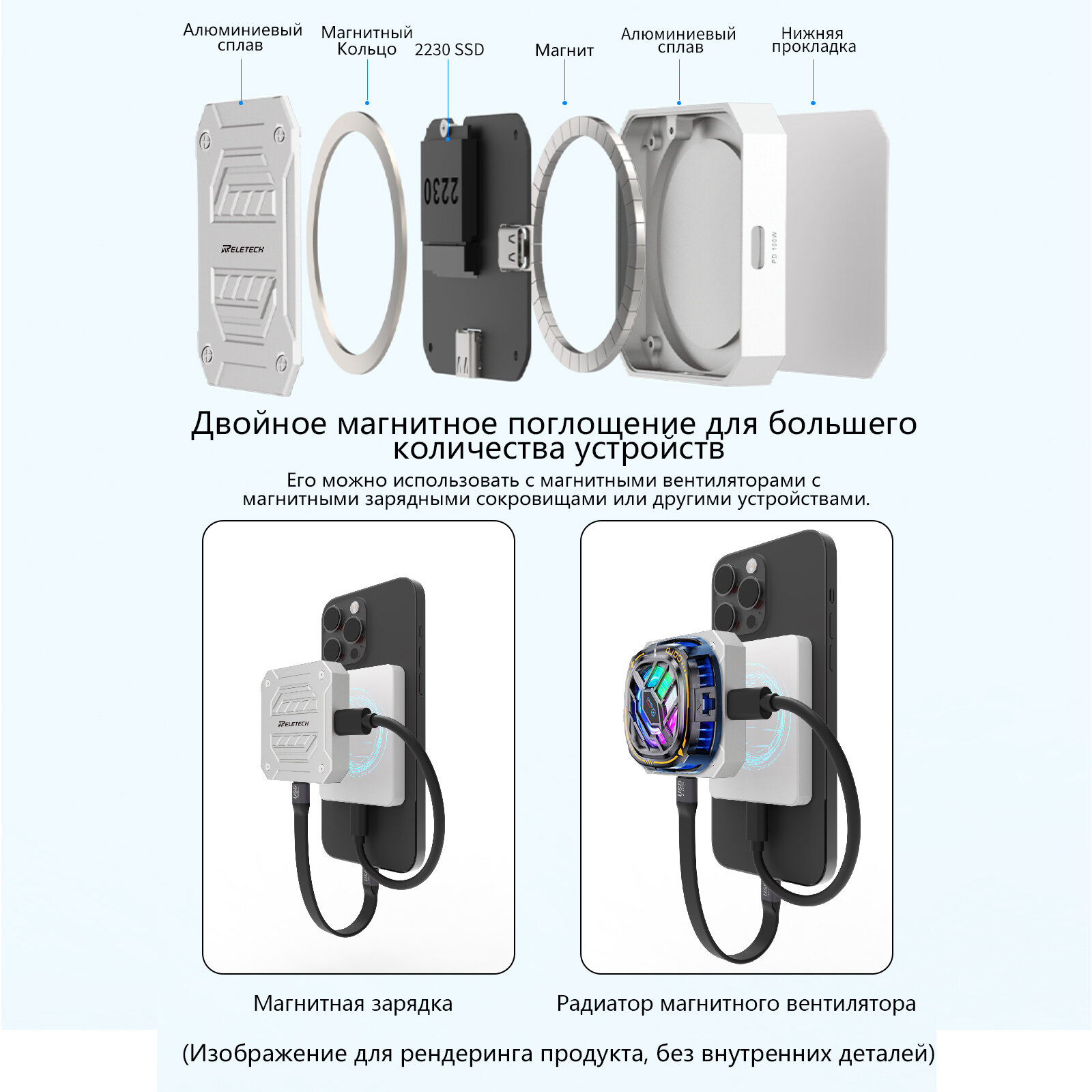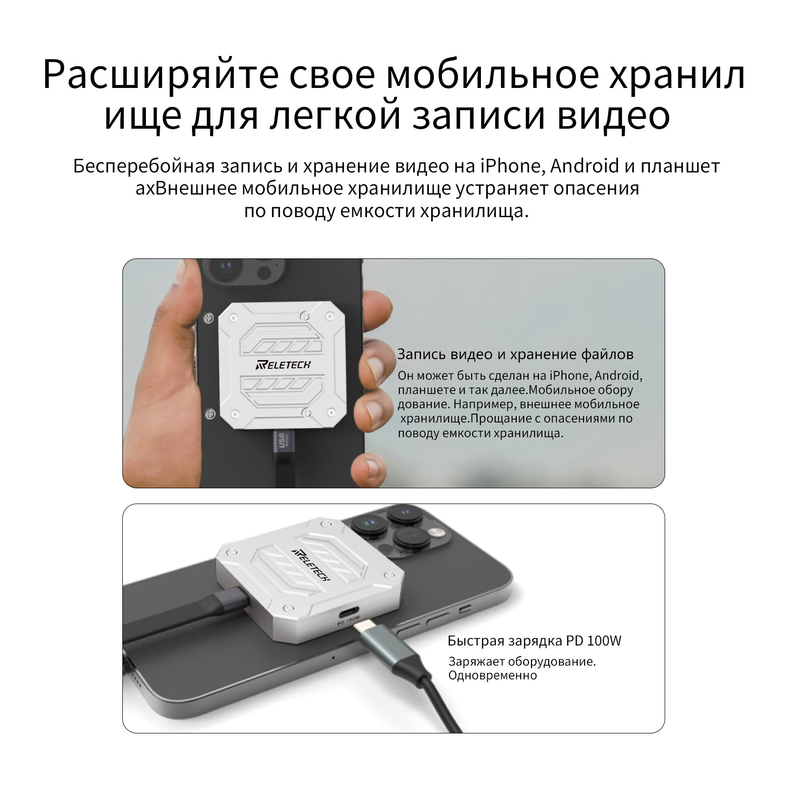 Reletech Elite9 Pro 1ТБ магнитный портативный SSD, сверхбыстрая зарядка 100 Вт, OTG совместим с iPhone 16/15, USB C смартфоны, планшеты, ноутбуки