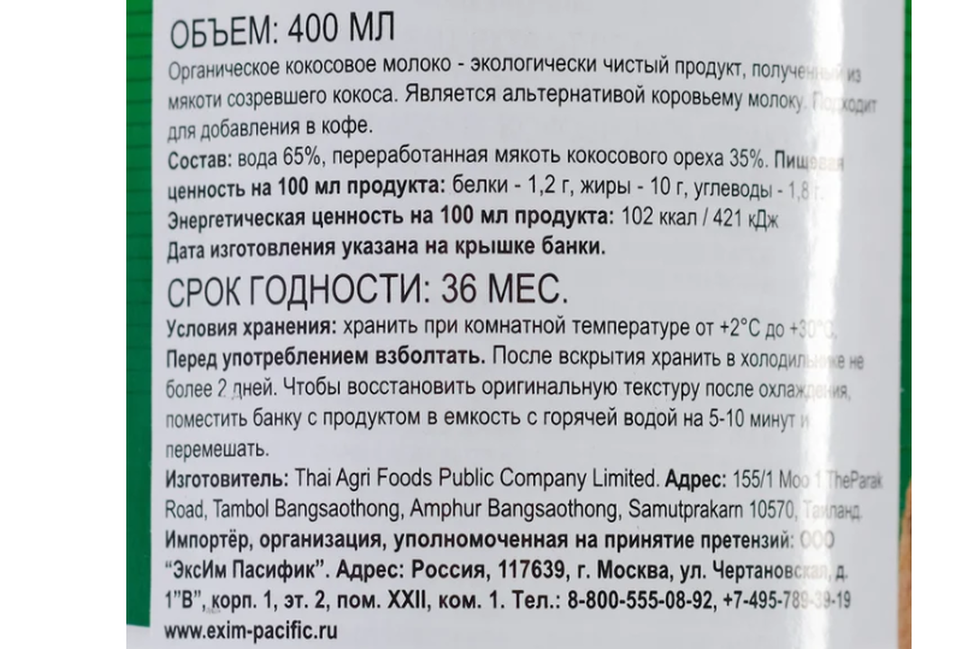 | Состав | переработанная мякоть кокосового ореха 35%, вода 65% |