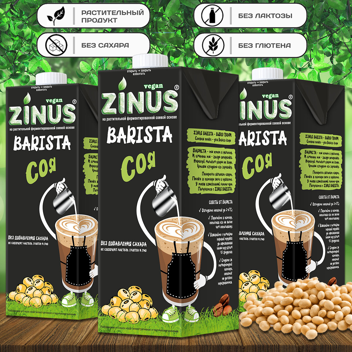 Купить Молоко соевое "ZINUS Barista" , в наборе 3 упаковки по 1 литру