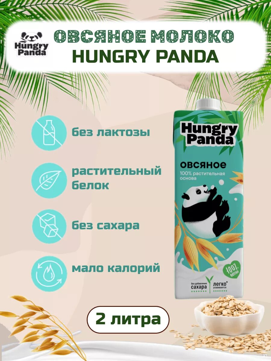 Овсяное молоко Hungry Panda растительное без сахара 2 штуки по 1 л интересное: