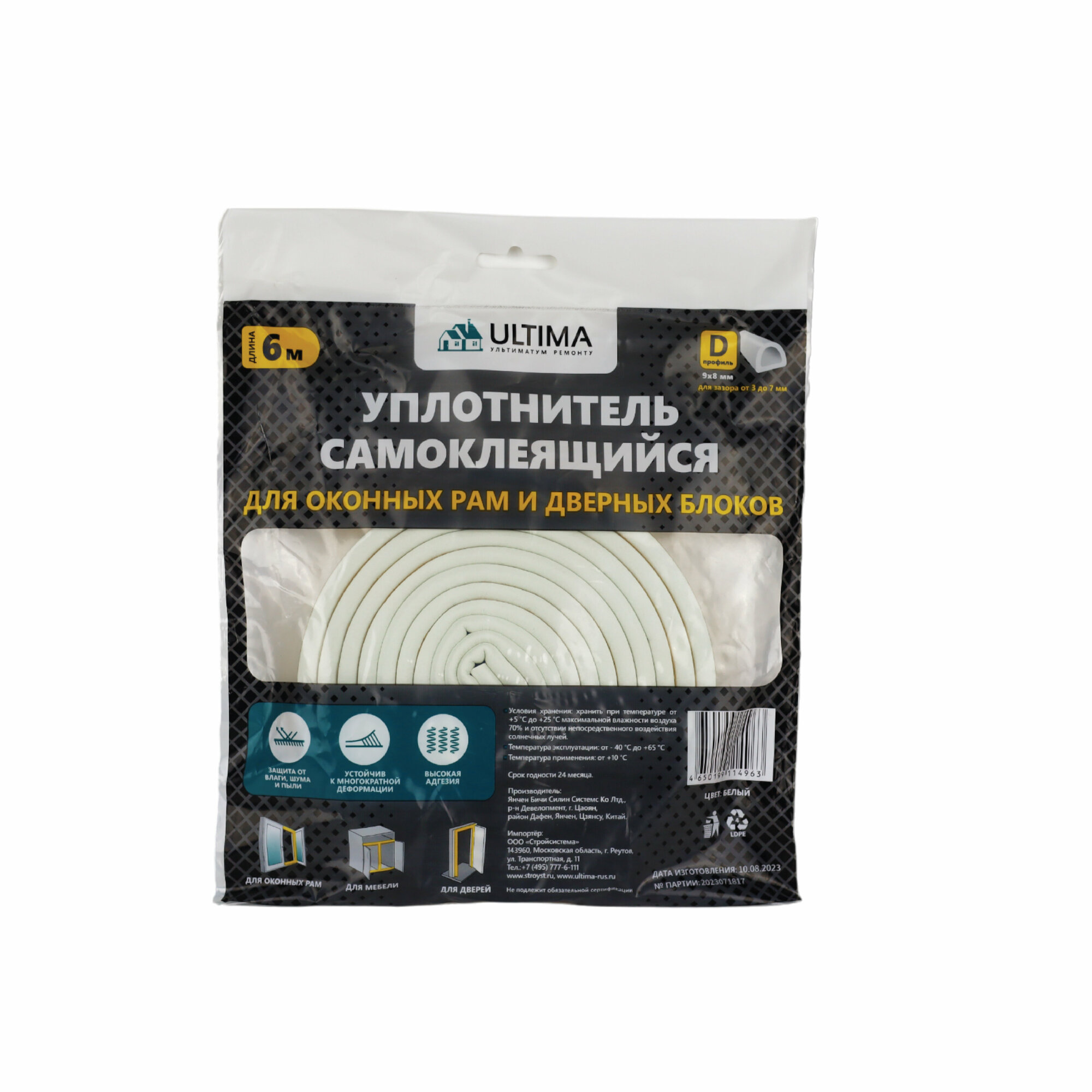 Самоклеящийся уплотнитель ULTIMA D-профиль, 6 м, белый ULTDW00620 интересное: