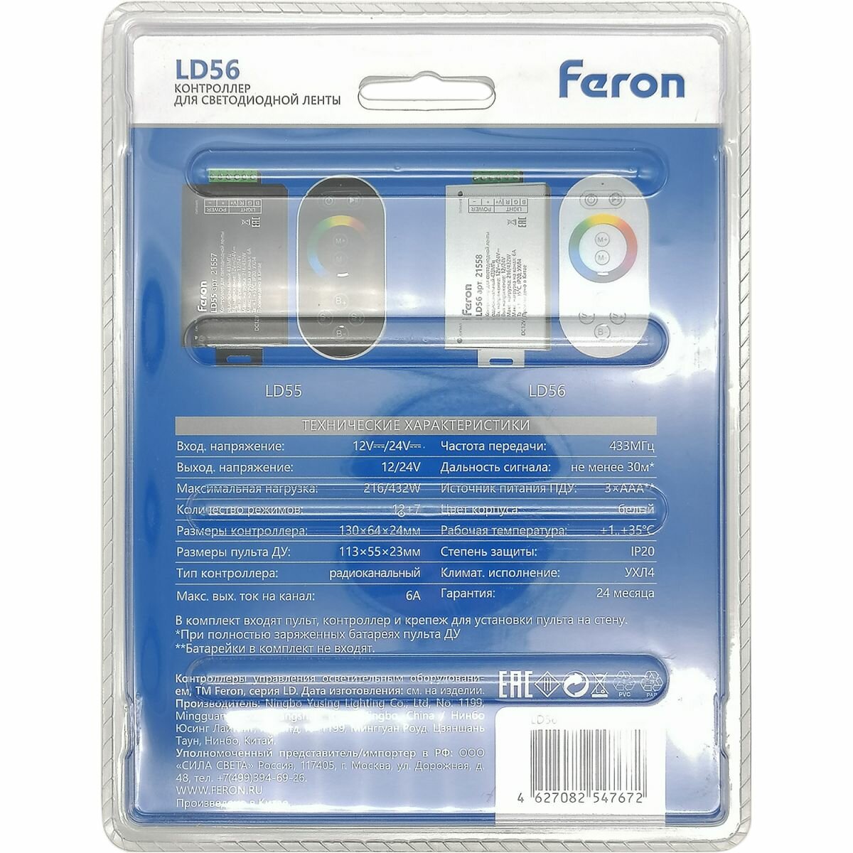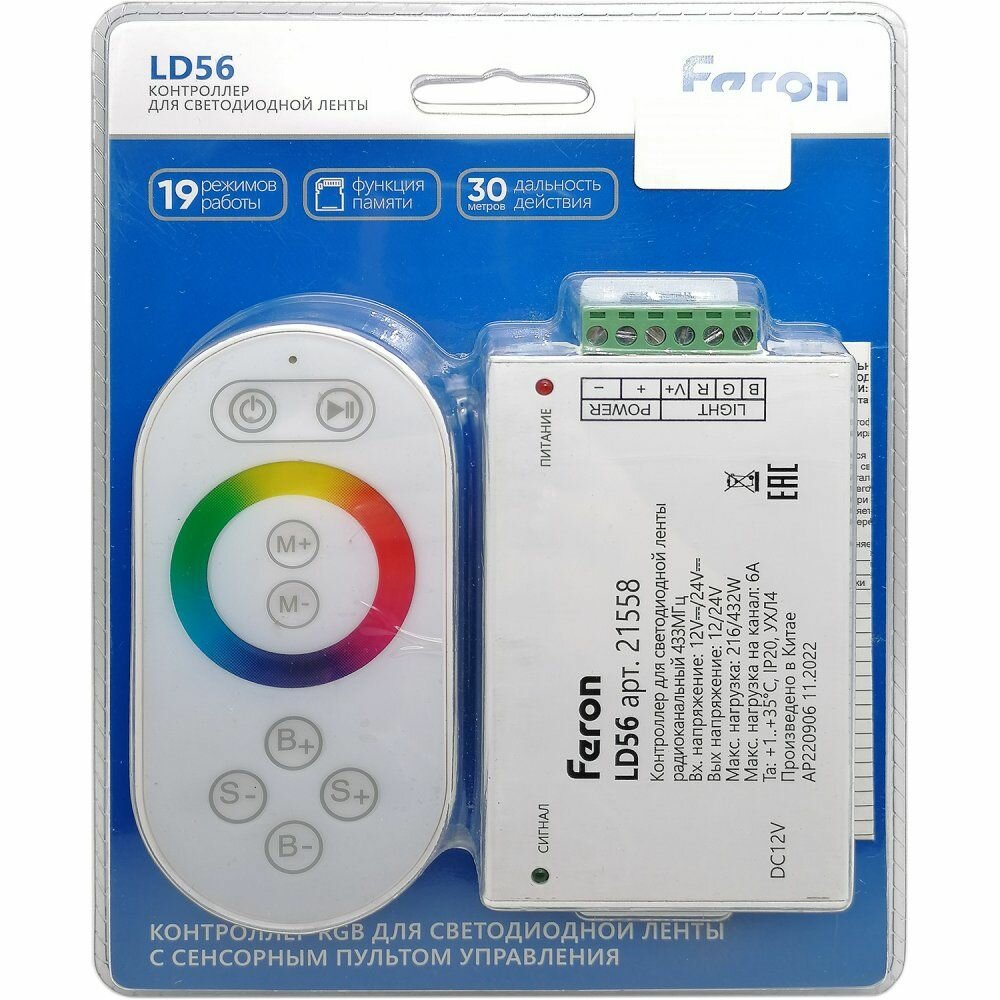 Купить Контроллер для светодиодной ленты с П/У белый, 18А 12-24V, LD56, FERON 21558 (1 шт.)
