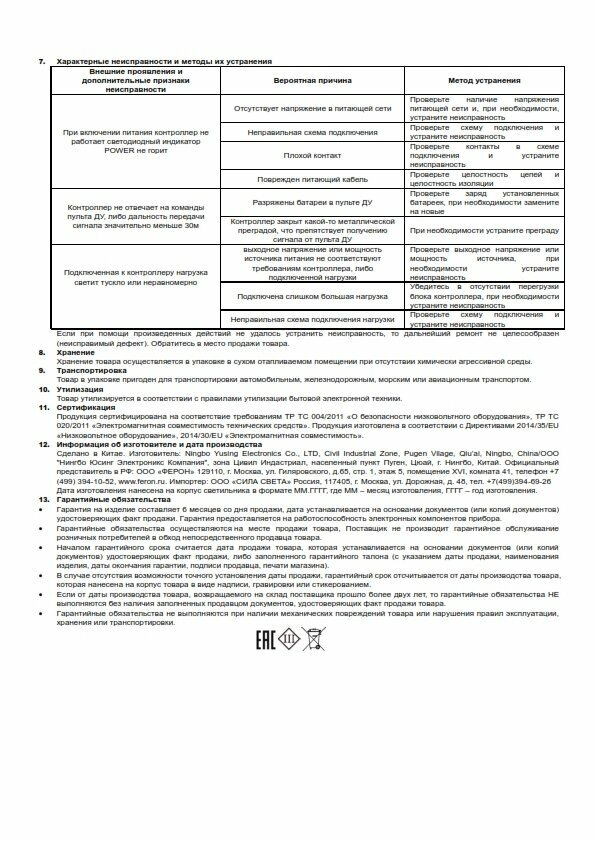 | Подробная комплектация | Контроллер, пульт, инструкция. |