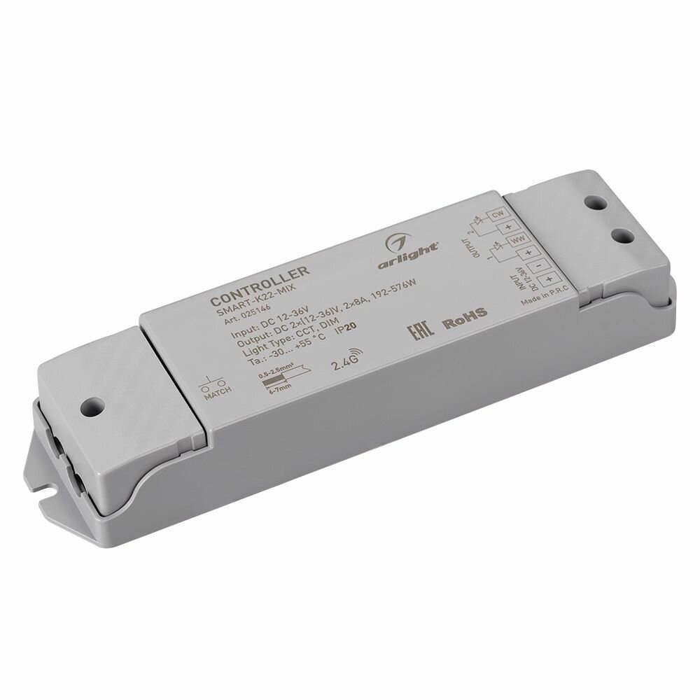 025146 Контроллер SMART-K22-MIX (12-36V, 2x8A, 2.4G) (Arlight, IP20 Пластик, 5 лет) интересное: