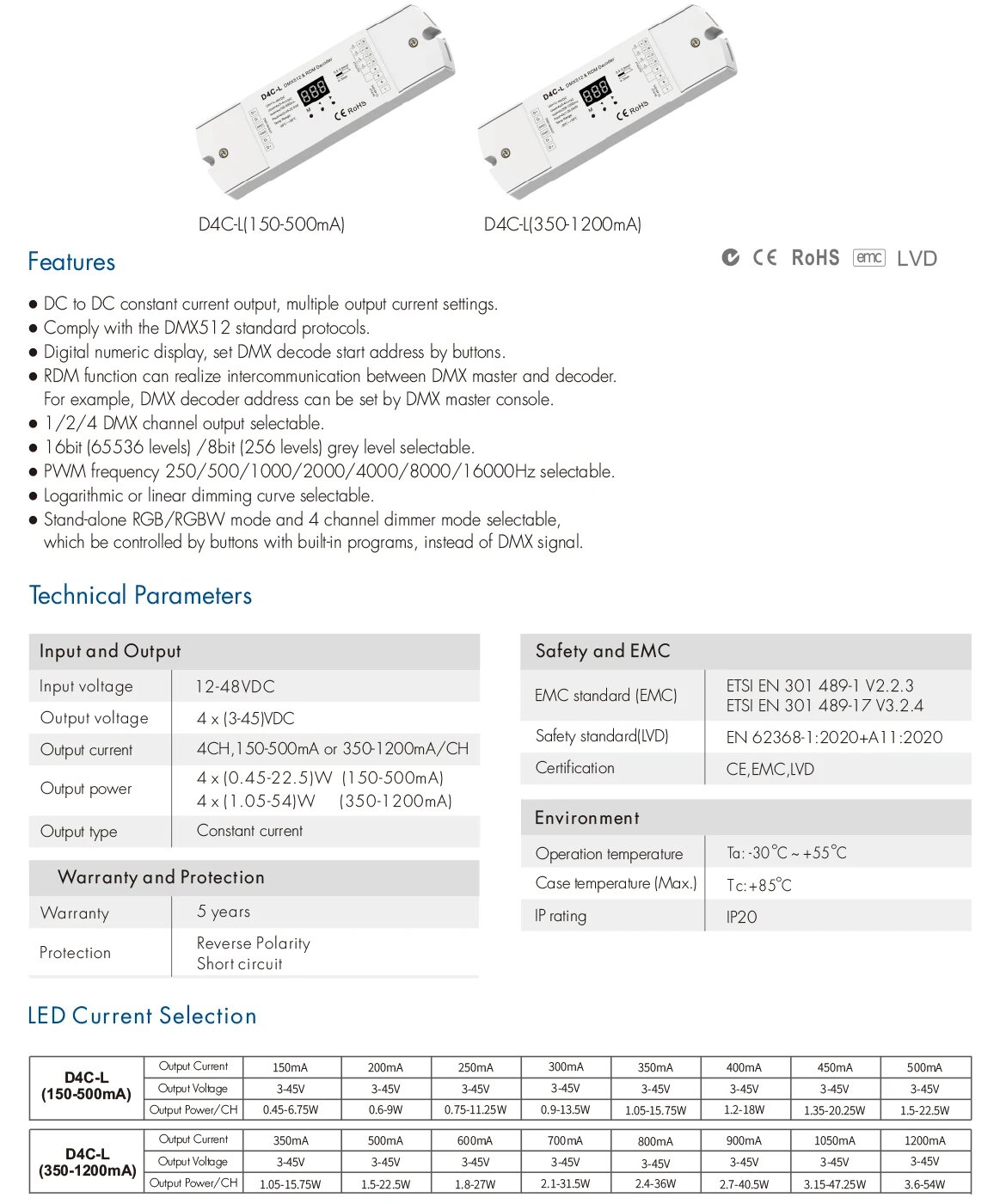 D4C-L 12-48 В постоянного тока DMX512 RDM декодер 350-мА или-ма, D4C-L 350-1200MA интересное: