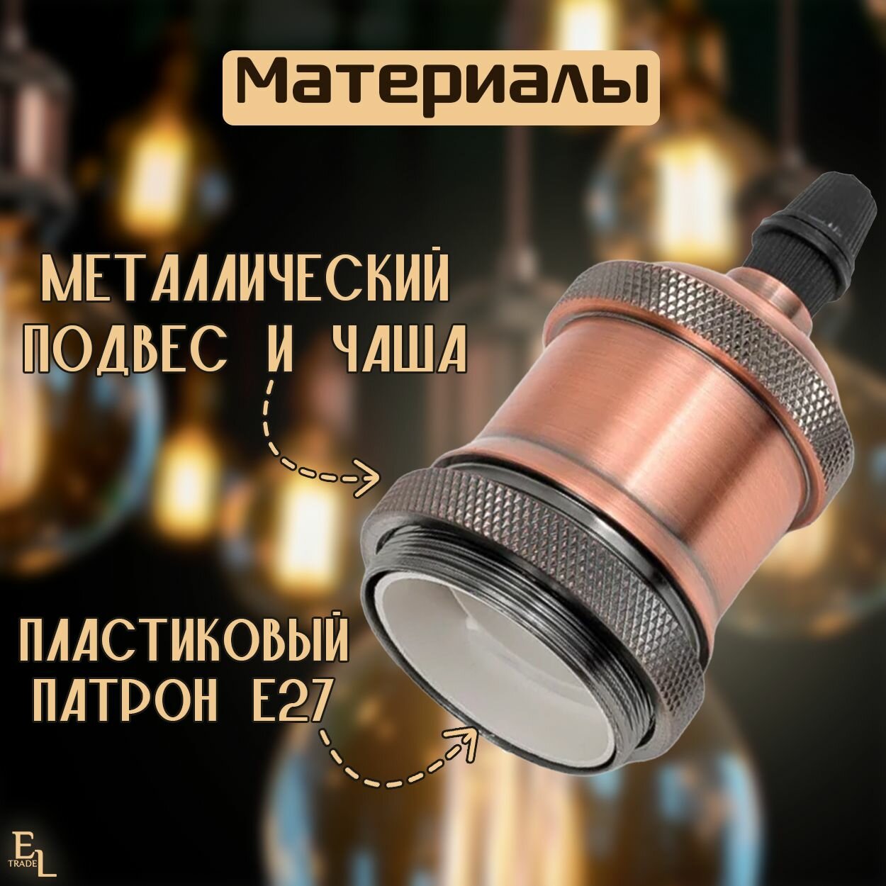 Патрон подвесной Е27, металлический Лофт, медь интересное: