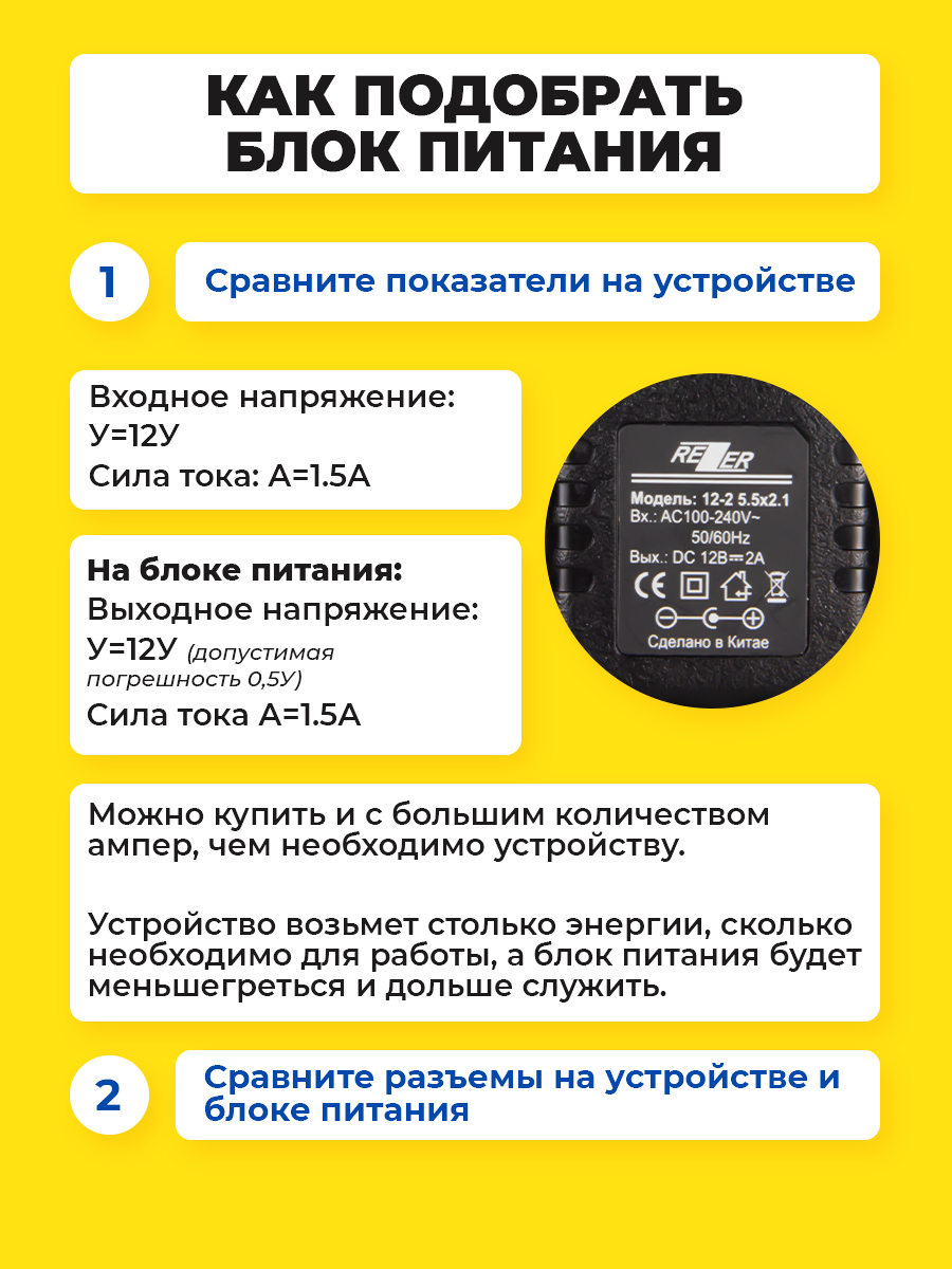 Блок питания универсальный 12В 2A REZER для Ростелеком, Триколор , разъем 5.5х2.1 интересное: