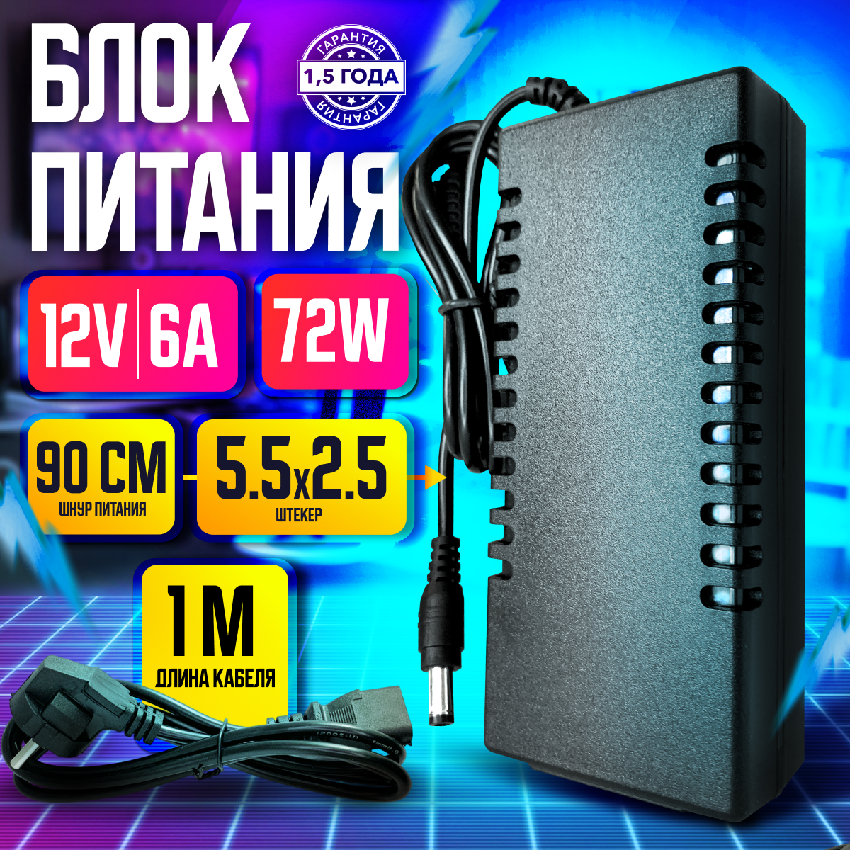Блок питания универсальный 12V/6A 12V/6A (5,5*2,5 мм) для видеонаблюдения, светодиодных лент, LED линеек, мониторов