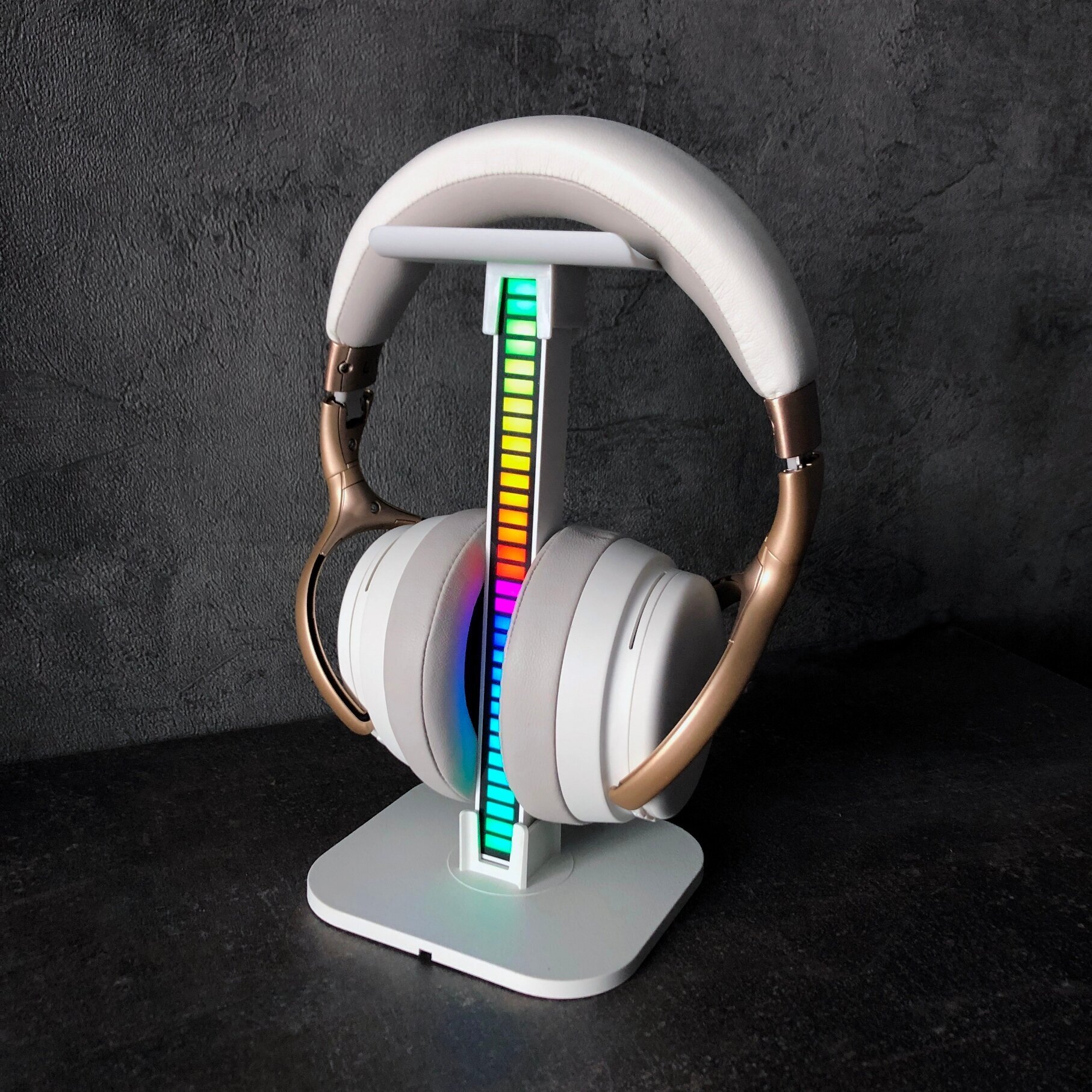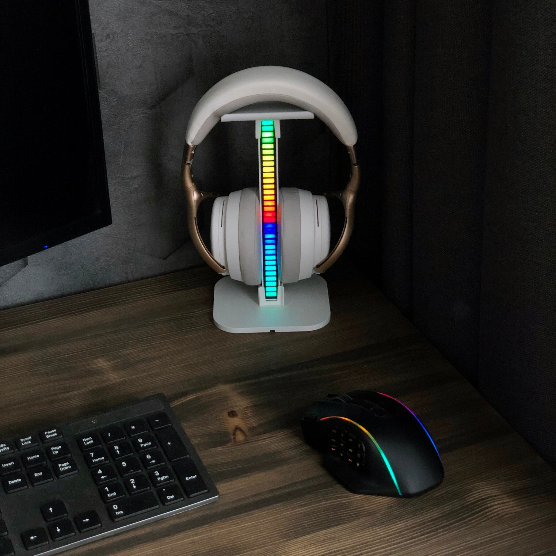 Купить Подставка-держатель для наушников игровых с подсветкой-эквалайзером для музыки, держатель игровой гарнитуры, атмосферный RGB эквалайзер, белая