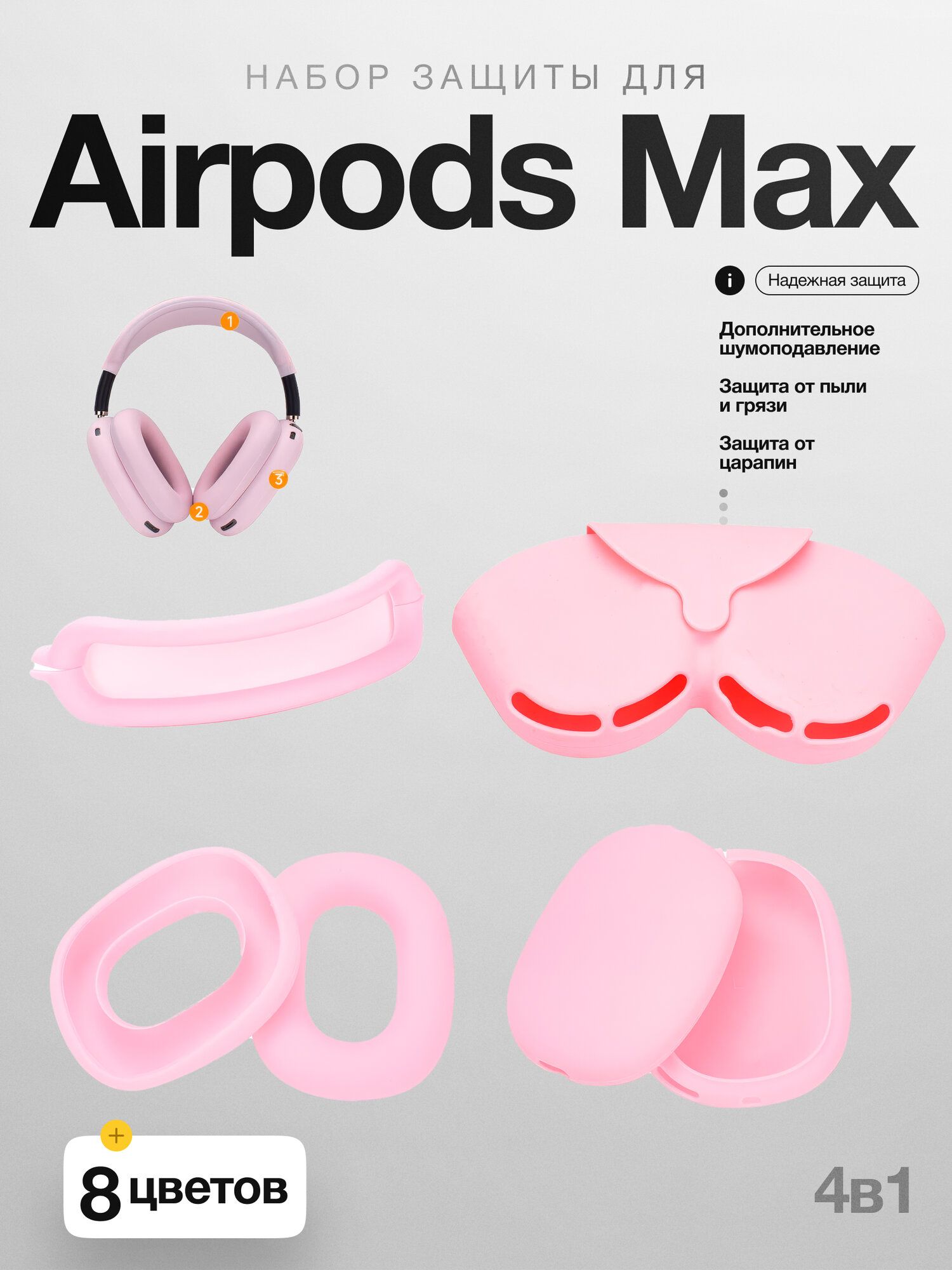 Набор защиты 3 в 1 для AirPods Max, силиконовый однотонный набор защиты для наушников, розовый