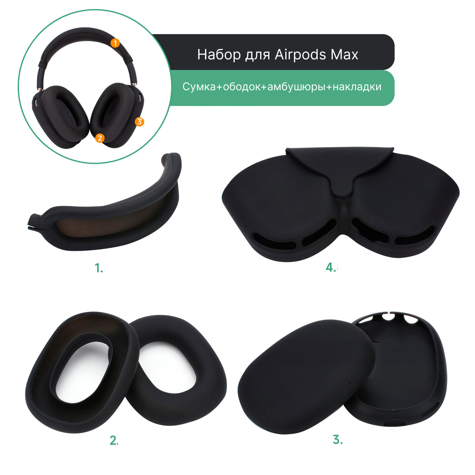 Набор защиты 3 в 1 для AirPods Max, силиконовый однотонный набор защиты для наушников, черный