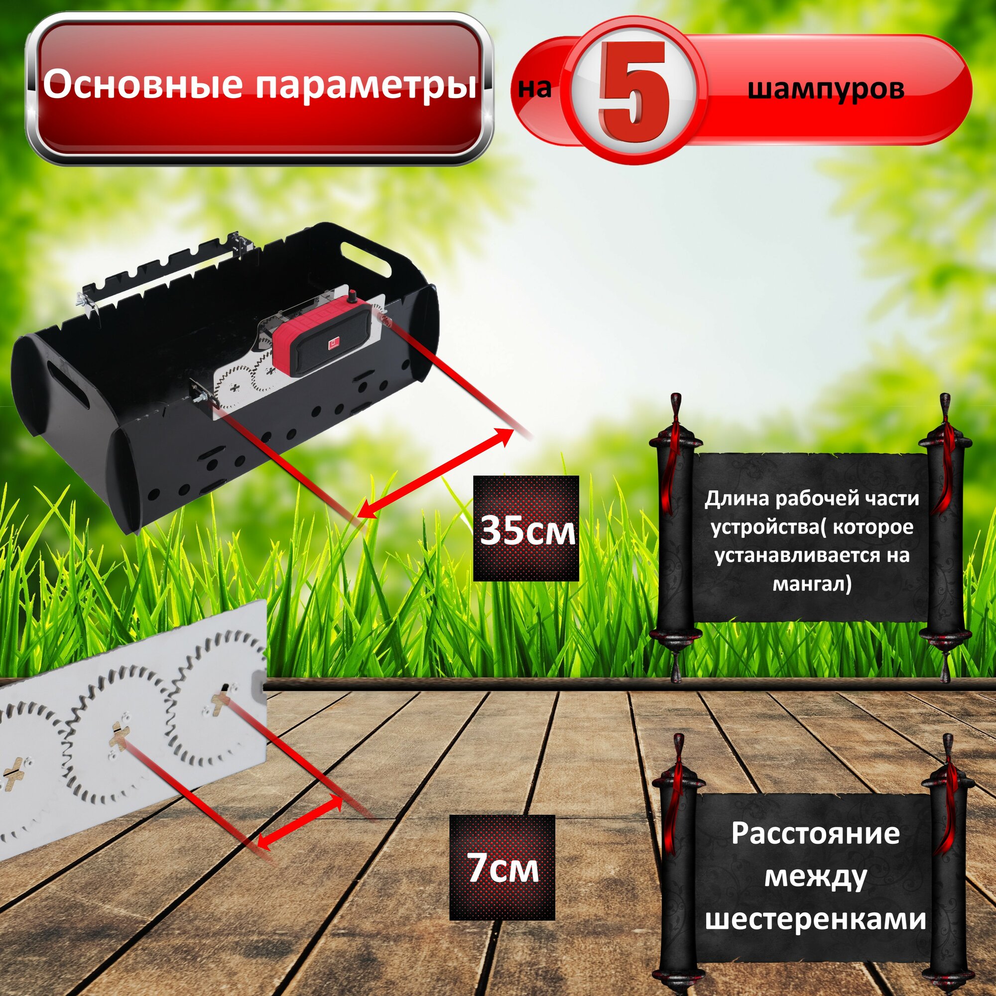 Emangal на 5 шампуров. Шампуры самокруты, Устройство для вращения шампуров с музыкой и светом на 5 шампуров. Электровертел Emangal.