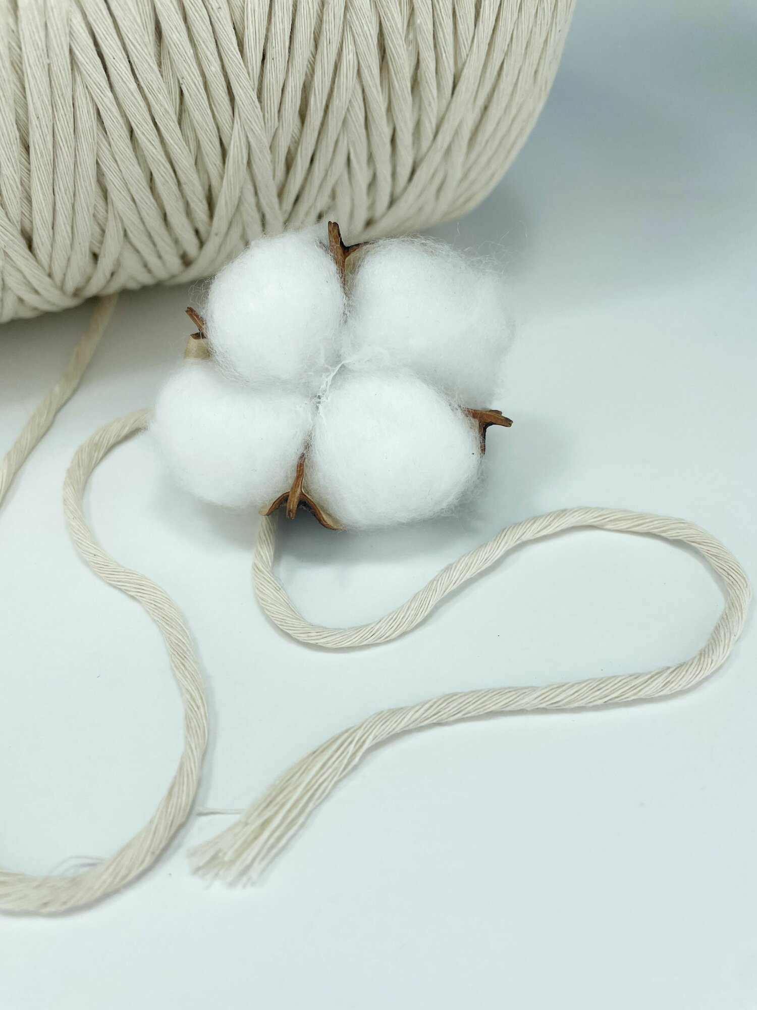 Шнур для макраме и рукоделия Dolly 100% хлопок 200 м/ 4 мм/ пряжа/ молочный