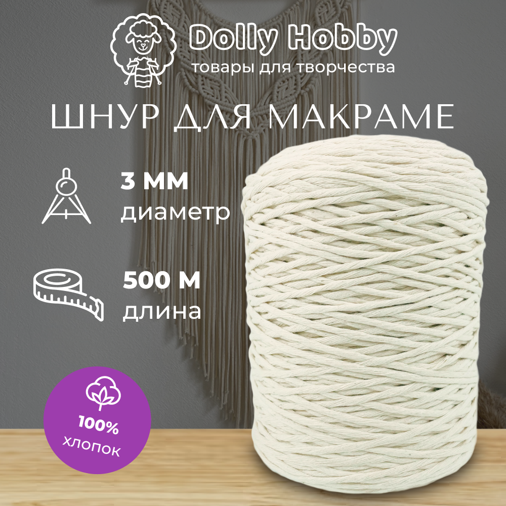 Шнур для макраме и рукоделия Dolly Hobby 100% хлопок 100 м/ 3 мм/ молочный