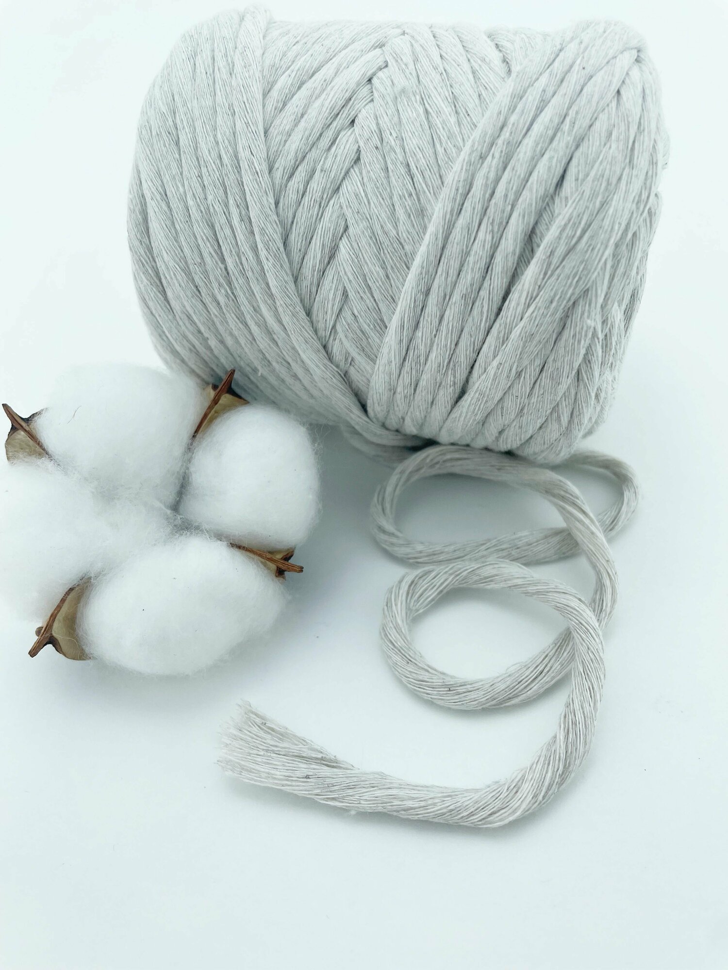 Шнур для макраме и рукоделия Dolly 80% хлопок 50 м/ 4мм/ светло-серый