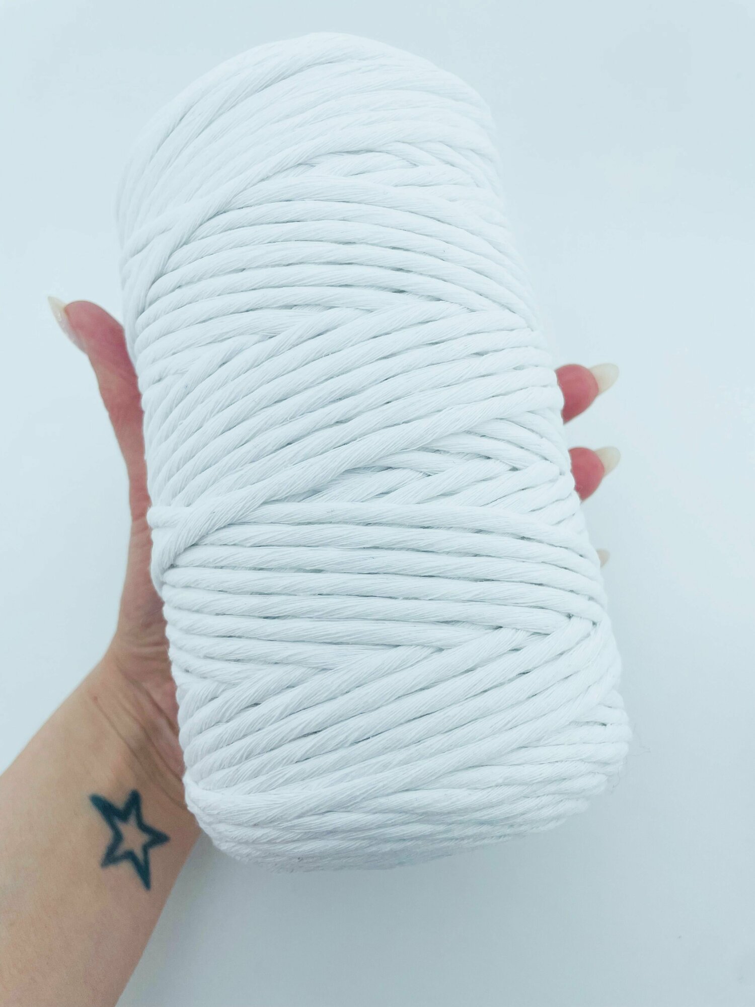 Шнур для макраме 100% хлопок 200м/ 6мм/ пряжа/ нитки для плетения панно/ белый(молочный)