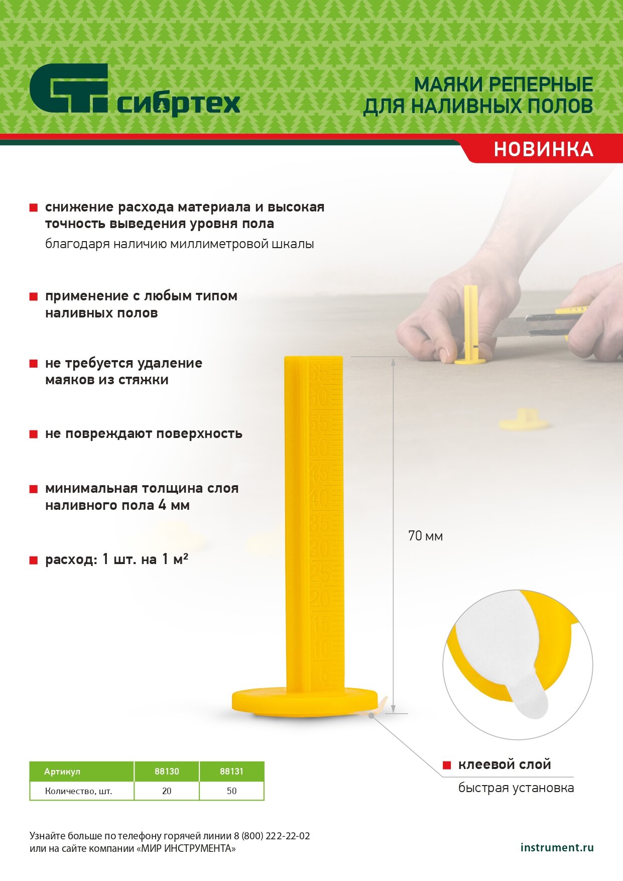 Маяки реперные для наливных полов, 50 шт. с клеевым слоем Сибртех интересное: