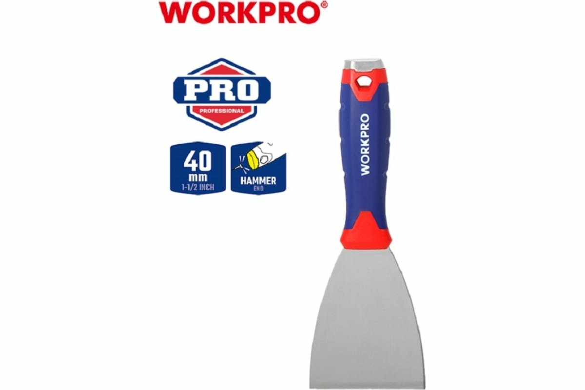 Шпатель WORKPRO WP321009, гибкий, нержавеющая сталь, рабочая ширина 40 мм