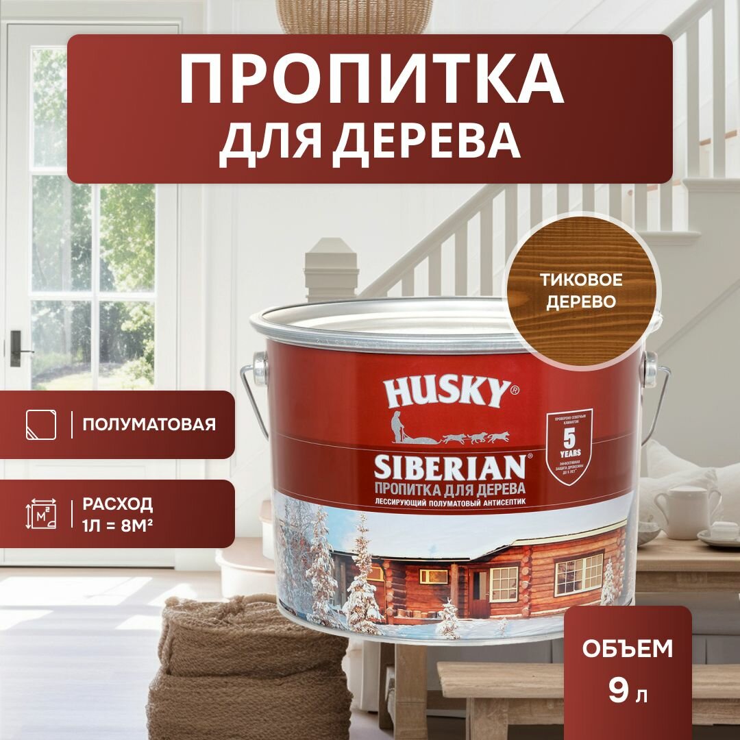 Купить Антисептик Husky Siberian полуматовый, тиковое дерево 9 л