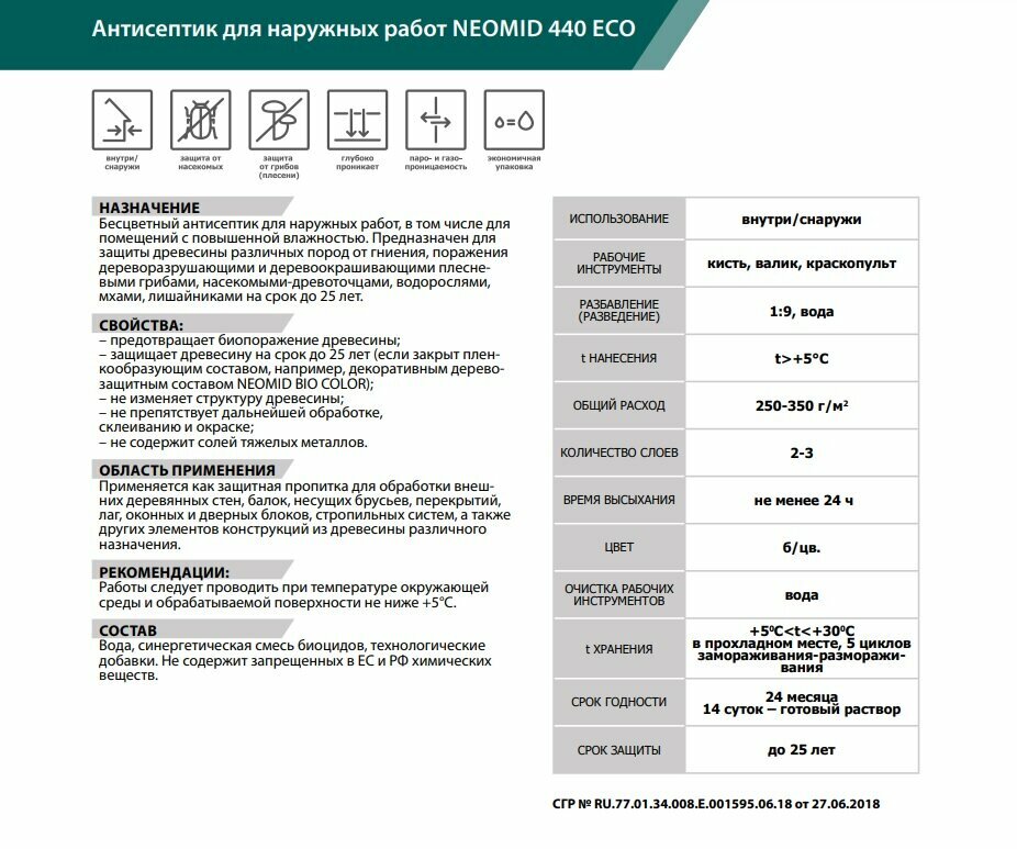 СохранитьНеомид 440 Эко биозащитный антисептик для наружных работ для дерева концентрат 1:9 (5л) / NEOMID 440 Еco биозащитный антисептик для наружных работ для интересное:
