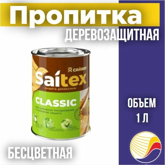 Пропитка, защита для дерева SAITEX CLASSIC / Сайтекс классик (бесцветная) 1л