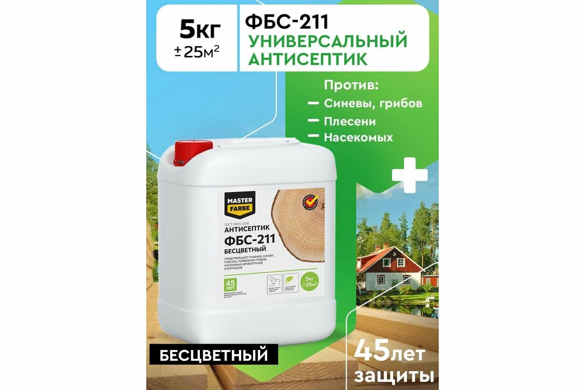 Купить Антисептик MASTERFARBE ФБС-211 для защиты древесины от синевы и плесени, экологичный, бесцветный 5 кг