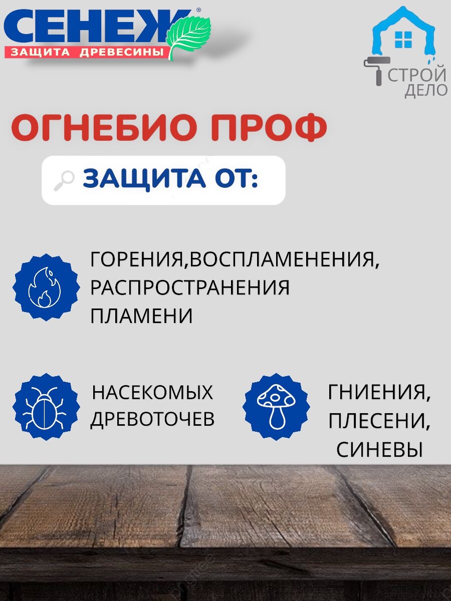 Купить Огнебиозащита Сенеж Огнебио Проф 12кг с Усиленным Огнезащитным Действием (I гр., II гр.) и Контрольным Тонированием.
