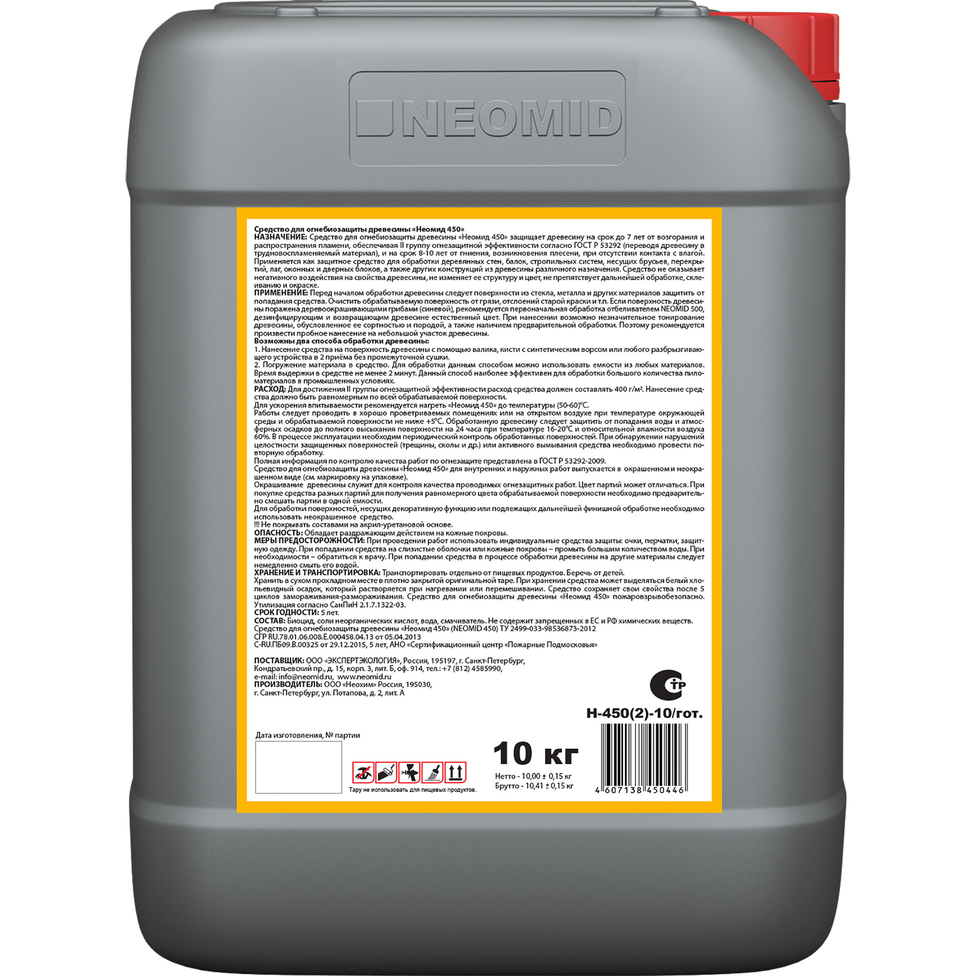 Огнебиозащитный состав для дерева Neomid 450, 2 группа, 10 кг