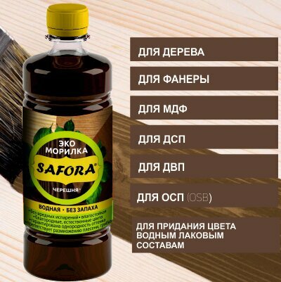 Морилка для дерева водная SAFORA, цвет черешня, 500мл, без запаха, быстросохнущая интересное:
