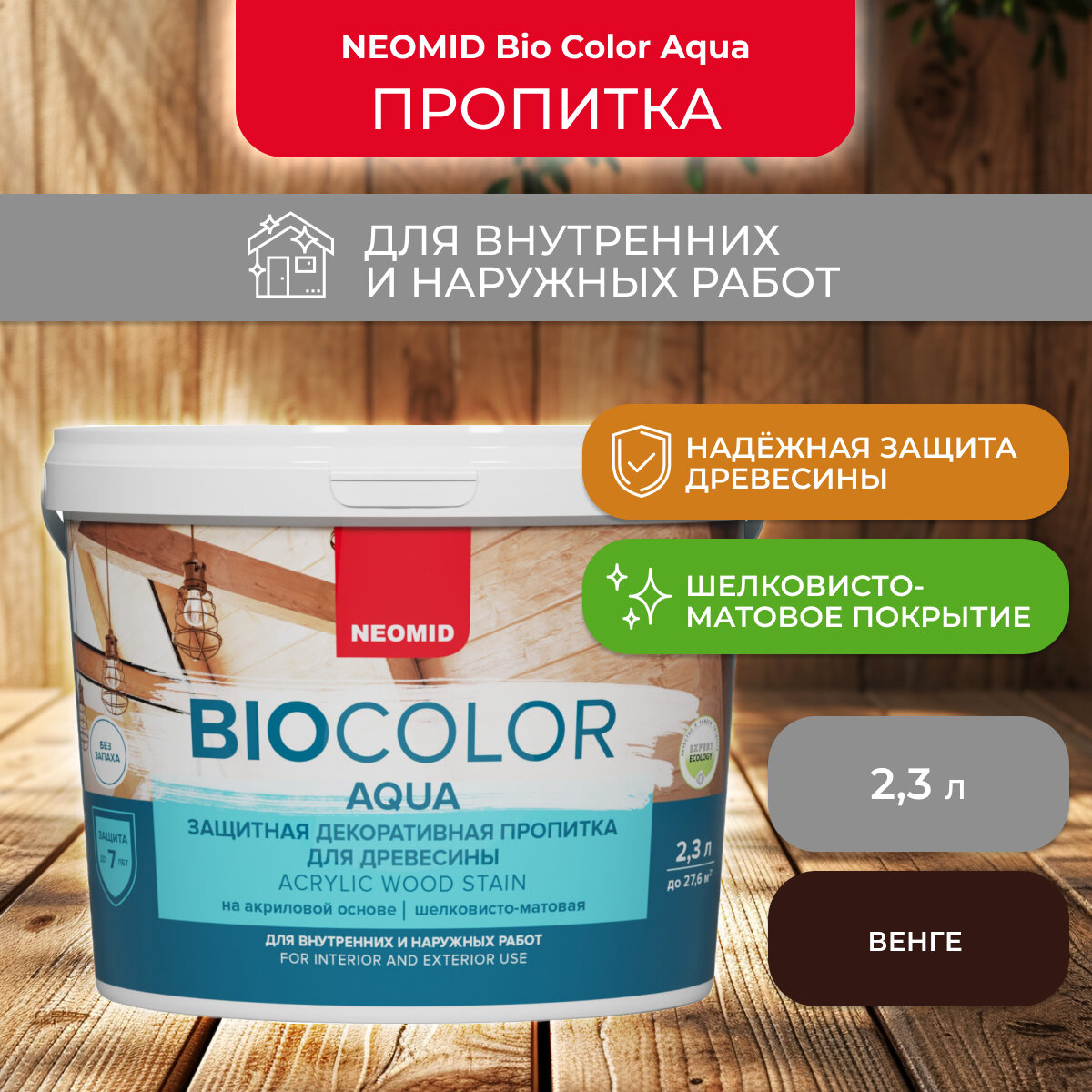 Купить Пропитка для Древесины Neomid Biocolor Aqua 2.3л Венге без Запаха, Деревозащитная для Внутренних и Наружных Работ / Неомид Био Колор Аква.