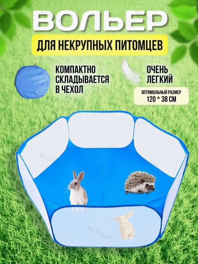 Вольер для мелких животных закрытый, тент для животных, цвет голубой