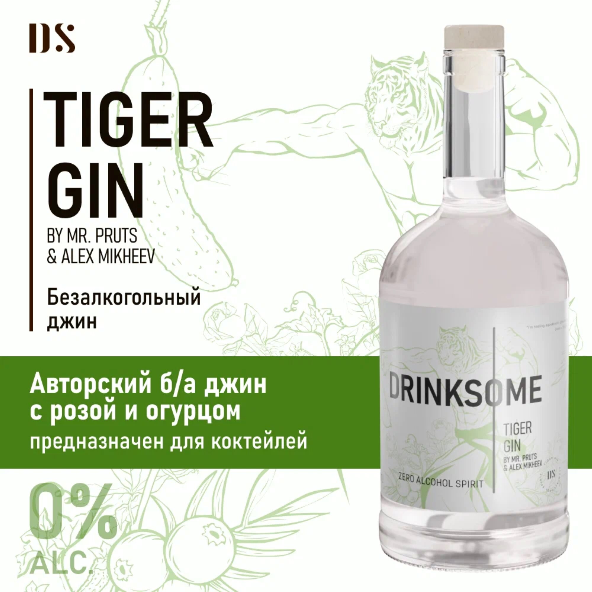 Безалкогольный Джин "Tiger Gin" от DRINKSOME 0,7 л. Авторский б/а Джин с розой и огурцом, предназначен для коктейлей. интересное: