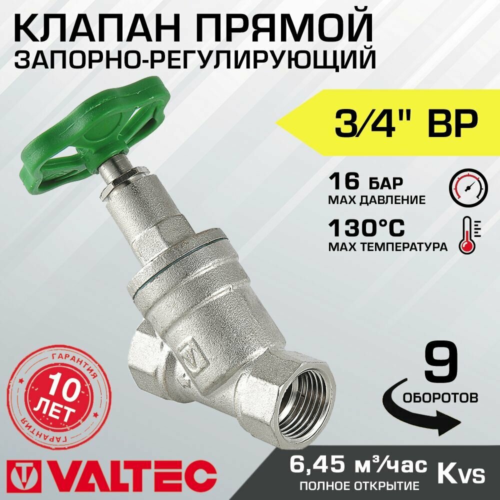 Вентиль прямоточный запорно-регулировочный 3/4" VALTEC VT.052.N.05 интересное: