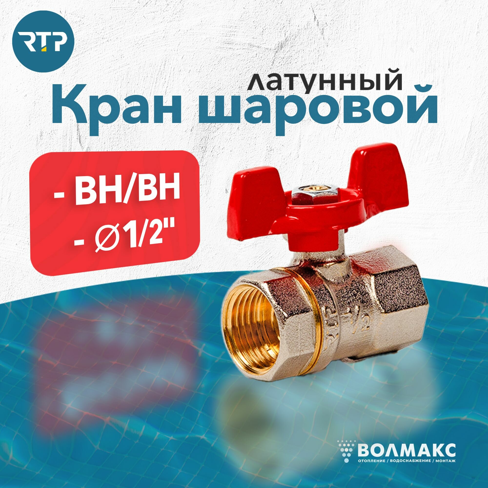Шаровый кран 1/2 дюйма RTP шаровой латунный вн/вн PN 40 ручка бабочка